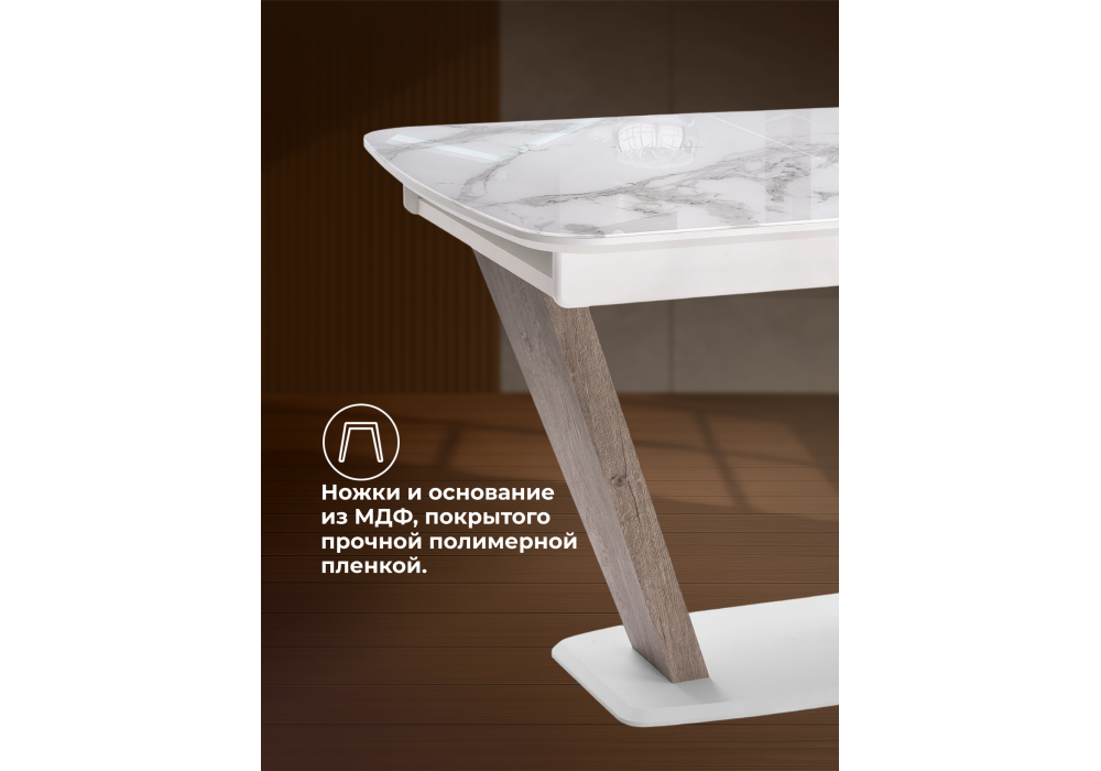 Стол стеклянный Woodville на тумбе Петир белая шагрень, дуб с пилением