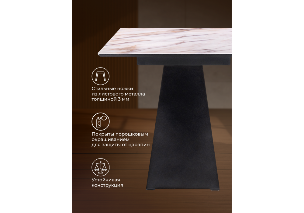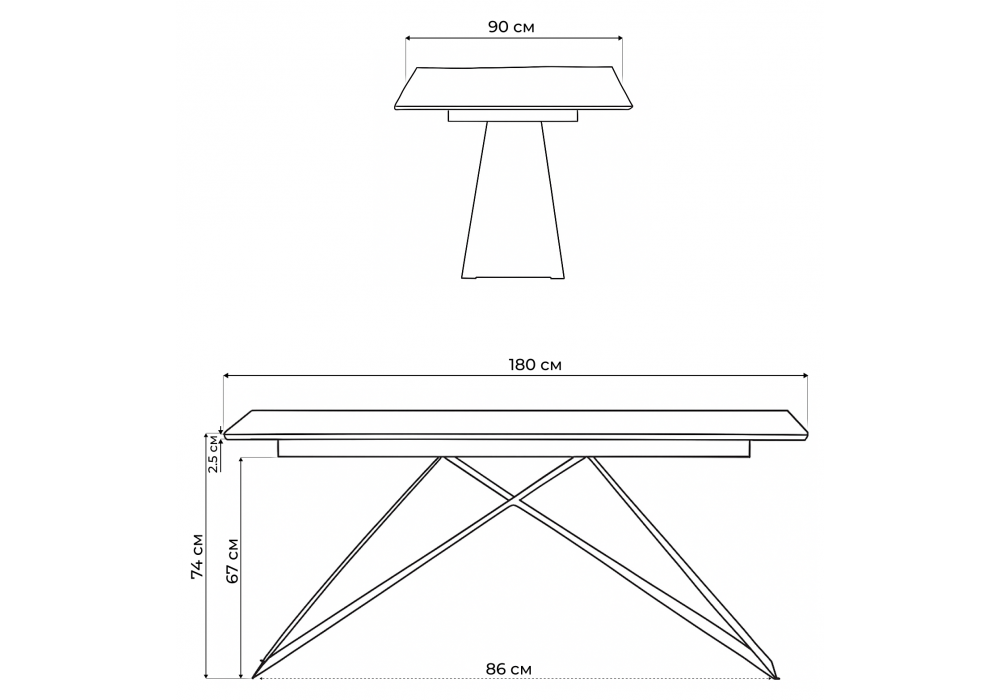 Расстояние между ножками: 86 см. Толщина столешницы: 2 см. Габариты упаковки: 1670х470х730 1910х1060х170Характеристики
