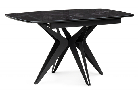 Стол стеклянный Woodville Риполь 140(180)х80 статуарио, черный, ножки черные