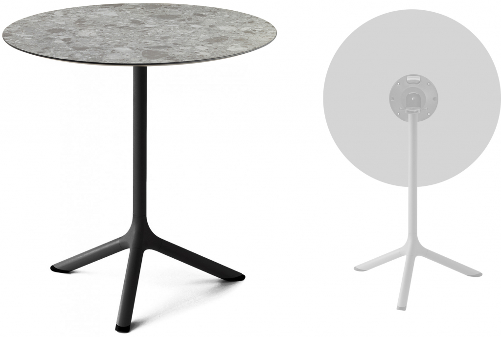 Дизайн:RadiceOrlandini DesignStudio. Награды:GOOD DESIGNAward 2021 в номинации "Самаяинновационная иэкологически устойчиваяколлекция года". Tripe- это коллекция необычных столов с подстольямис тремя лучами.Изделие, в котором функциональность, дизайн, минимализм и узнаваемость находят правильный синтез. Стальное основание с соединениямииз литого под давлением алюминия на самом деле не является традиционным моноблоком, оно состоит из нескольких элементов, которые можно заменить по мере необходимости.Tripe- это промышленный проект, внимательный к экономической составляющей, представляет собой по-настоящему гибкую и многообразную систему, дающую жизнь коллекции столов и аксессуаров различных форм и размеров, идеально подходящих для дома и общественных помещений. Особенности подстолья: Колонна с круглым сечением Ø35 мм выполненаиз стали с порошковым покрытием. Трехлучевое основаниевыполненоиз стали с порошковым покрытием. Соединение ножек выполненоиз литого алюминия. Складной механизм, выполненный из нейлона, позволяет складывать столы в вертикальное положение и экономить место. Резиновые ножки. Поставляется в разобранном виде. Особенности столешницы: Материал -компакт-ламинатHPL. Этокомпозитный материал из прочных плоских панелей, которые с двух сторон ламинированы пластиком. Столешница обладаетвысокой устойчивостью к физическому, механическому и температурному воздействию. Отличается высокой прочностью, ламинированный слой защищает столешницу от различных возможных деформаций и химических воздействий на поверхность. Ламинированнаястолешницаимеет целый пакет характеристик: ударопрочный материал, защищающий от физических воздействий колющих, режущих и царапающих инструментов, слой ламината-пленки, защищающий поверхность от химических воздействий влаги, кофе, уксуса и других. Толщина 10 мм. Плоский край с черным сердечником. 12 отверстий для винтов M6. Посмотреть технические характеристики подстолья. Для уточнения всех возможных вариантов материала ицвета данного изделия обращайтесь к нашимменеджерам!Характеристики