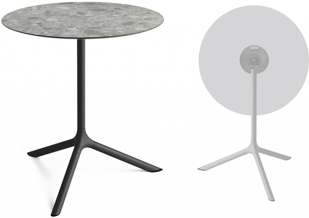 Дизайн:RadiceOrlandini DesignStudio. Награды:GOOD DESIGNAward 2021 в номинации "Самаяинновационная иэкологически устойчиваяколлекция года". Tripe- это коллекция необычных столов с подстольямис тремя лучами.Изделие, в котором функциональность, дизайн, минимализм и узнаваемость находят правильный синтез. Стальное основание с соединениямииз литого под давлением алюминия на самом деле не является традиционным моноблоком, оно состоит из нескольких элементов, которые можно заменить по мере необходимости.Tripe- это промышленный проект, внимательный к экономической составляющей, представляет собой по-настоящему гибкую и многообразную систему, дающую жизнь коллекции столов и аксессуаров различных форм и размеров, идеально подходящих для дома и общественных помещений. Особенности подстолья: Колонна с круглым сечением Ø35 мм выполненаиз стали с порошковым покрытием. Трехлучевое основаниевыполненоиз стали с порошковым покрытием. Соединение ножек выполненоиз литого алюминия. Складной механизм, выполненный из нейлона, позволяет складывать столы в вертикальное положение и экономить место. Резиновые ножки. Поставляется в разобранном виде. Особенности столешницы: Материал -компакт-ламинатHPL. Этокомпозитный материал из прочных плоских панелей, которые с двух сторон ламинированы пластиком. Столешница обладаетвысокой устойчивостью к физическому, механическому и температурному воздействию. Отличается высокой прочностью, ламинированный слой защищает столешницу от различных возможных деформаций и химических воздействий на поверхность. Ламинированнаястолешницаимеет целый пакет характеристик: ударопрочный материал, защищающий от физических воздействий колющих, режущих и царапающих инструментов, слой ламината-пленки, защищающий поверхность от химических воздействий влаги, кофе, уксуса и других. Толщина 10 мм. Плоский край с черным сердечником. 12 отверстий для винтов M6. Посмотреть технические характеристики подстолья. Для уточнения всех возможных вариантов материала ицвета данного изделия обращайтесь к нашимменеджерам!Характеристики