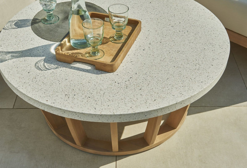 Woodland - это современный, но неподвластный времени кофейный столик с керамической столешницей и деревянным каркасом - это идеальный выбор для любого сада, патио, террасы или зимнего сада. Благодаря своему простому стилю и использованию натурального дерева столик легко впишется как в современный, так и в традиционный сад. Изготовленный из высококачественного ТИКА, столик Woodland прочный и долговечный. Древесина, одобренная FSC, обладает естественной водонепроницаемостью, поэтому вы можете хранить изделие на открытом воздухе круглый год. Цвет натуральной твердой древесины представляет собой натуральный цвет с мелкой текстурой, придающий древесине приятный теплый вид. Особенности: Столик выполнен из МАССИВА ТИКА. Тик - это лиственное дерево твердых пород, которое происходит из высокогорья. Никакая другая древесина не обладает такой исключительной прочностью и долговечностью, как тик. Его уникальная текстура и кожистый запах обусловлены высоким содержанием масла. Эти характеристики в сочетании с высокой плотностью древесины предотвращают коробление и гниение, позволяя мебели оставаться на открытом воздухе в любых условиях без ухода или защитных средств. Древесина тика сертифицирована INDO TLAS - SVLK и FSC. Знак FSC - показатель того, что продукция происходит из леса, в котором ведется экологически и социально ответственное лесное хозяйство. Страна происхождения древесины: Индонезия. Анодированная фурнитура из нержавеющей стали. Столешница толщиной 40 мм выполнена из керамики Terrazzo, износостойкая и легко чистящаяся. Открыть инструкцию по уходу.Характеристики