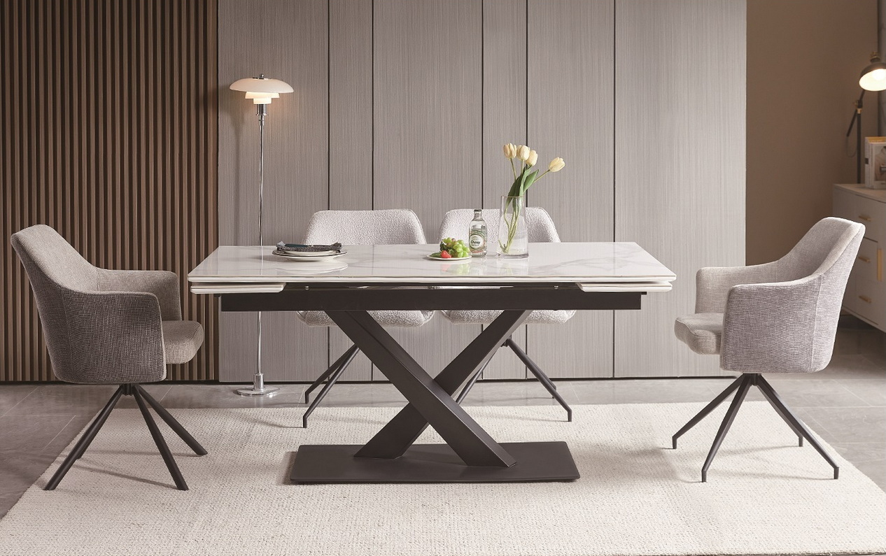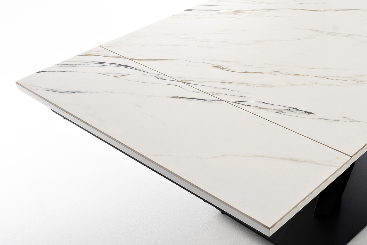 "Юпитер" стол интерьерный раздвижной обеденный из керамики, цвет белый глянцевый