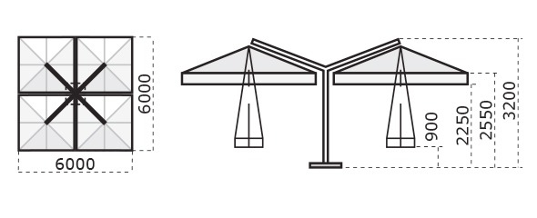 Зонт профессиональный четырехкупольный 6х6 м Scolaro Alu Poker Starwhite, белый, слоновая кость Alu Poker Starwhite состоит из 4-х отдельных зонтов, закрепленных на одной центральной опоре. Модель - элегантный образец дизайна с особым вниманием к деталям и отделке. Многокупольный зонт подходит для затенения больших пространств: на летних площадках кафе, баров, ресторанов, в парках и других общественных пространствах, при этом занимает минимум площади. Каркас и спицы выполнены из алюминия с усиленными стальными элементами и покрытием порошковой краской белого цвета, что позволяет использовать зонт в любых погодных условиям, в том числе в условиях с повышенной влажностью. Легко заменяемые прочные алюминиевые спицы с запатентованными пластиковыми наконечниками, которые увеличивают сопротивление и срок службы, упрощают техническое обслуживание и улучшают конструкцию. Специальное крепление к опоре (Wind Stop) для лучшей устойчивости в ветренную погоду и для обеспечения наклона зонта. Каждый купол выполнен из акрила 350 г/м² с пропиткой. Варианты цвета: слоновая кость (A1), терракота (T2), бордовый (T3), серо-коричневый (T6), белый (T7), серебристо-серый (T8), антрацит (T9), черный (S1). Цена на сайте указана для зонта с куполом в цвете слоновая кость (A1) без волана. По запросу доступно выполнение купола из акрила Special Collection класса A и B (минимальный заказ 5 шт.). Технические характеристики зонта: высота общая 3200 мм; высота до кромки открытого зонта: 2550 мм; высота до кромки закрытого зонта: 900 мм; общая ширина 6000 мм (включая базу), общая длина 6000 мм; размер каждого купола 3000х3000 мм. Посмотреть технические характеристики. Посмотреть инструкцию по установке зонта. Таблица выбора утяжелительных баз для стабилизации зонта. В комплект поставки входит: Каркас с поворотным механизмом (360°). Четыре купола, механизм открытия-закрытия, вентиляционная заглушка (ветровой клапан). Система быстрой замены спиц "Easy Change". База для утяжелительных плит. Открыть инструкцию по эксплуатации уличных зонтов. Компания Scolaro создана 50 лет назад и была известна как ремесленное производство деревянных зонтиков. Традиционные позиции и современные знания позволили Scolaro выпускать широкий спектр зонтов, которые позволяют не только укрываться от солнца и дождя, но и являются прекрасным дополнением интерьера стильных заведений. Дизайн, новые технические решения и сочетание высококачественных материалов имеют решающее значение для технической эволюции зонтов Scolaro, процесс производства которых является полностью итальянским. Наша компания - официальный эксклюзивный дистрибьютор фабрики Scolaro Mario & Fabio srl. в России. На все зонты компании Scolaro предоставляется сервисное и гарантийное обслуживание. Для того, чтоб зонт прослужил долго, воспользуйтесь инструкциями по эксплуатации и хранению зонтов.