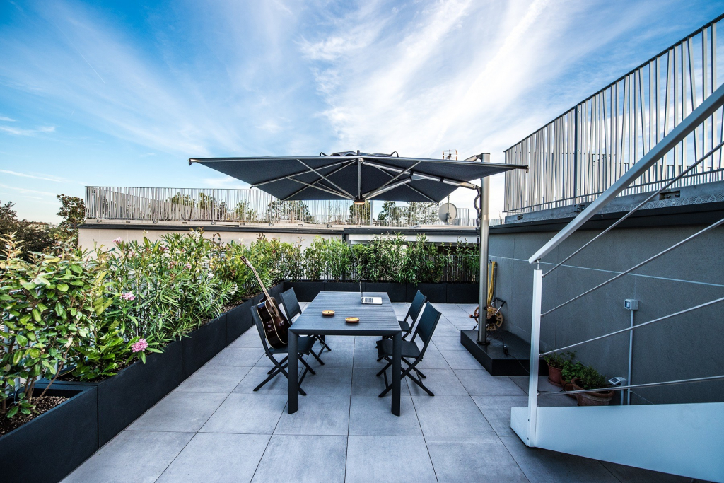Зонт профессиональный 3.5х3.5 м Scolaro Astro Titanium, титан, черный Уникальный зонт Astro Titanium - футуристический продукт, подходящий для современных открытых пространств в стиле минимализм. Больше не нужны механизмы и тросы для открытия зонта, данная новинка работает на газовом поршне. Легким нажатием кнопки зонт плавно открывается и закрывается. Кроме того, новая система открытия-закрытия позволяет не убирать из-под зонта мебель, зонт аккуратно придвигается к опоре и не нависает над мебелью. Каркас и спицы выполнены из алюминия в титановом цвете, детали - из нержавеющей стали, аксессуары - из нейлона ABS, винты из нержавеющей стали и никелированной латуни. Купол выполнен из акрила 350 г/м² с пропиткой. Варианты цвета: слоновая кость (A1), терракота (T2), бордовый (T3), серо-коричневый (T6), белый (T7), серебристо-серый (T8), антрацит (T9), черный (S1). Цена на сайте указана для зонта с куполом в черном цвете (S1) без волана. По запросу доступно выполнение купола из акрила Special Collection класса A и B (минимальный заказ 5 шт.). Инновационный выдвижной механизм позволяет открывать и закрывать зонт одним движением, не задевая мебель под ним. Технические характеристики: высота до кромки открытого зонта: 2400 мм; высота до кромки закрытого зонта: 600 мм; общая длина: 4300 мм (включая базу); общая ширина: 3500 мм. Посмотреть технические характеристики. Посмотреть инструкцию по установке зонта. Таблица выбора утяжелительных баз для стабилизации зонта. В комплект поставки входит: Каркас с поворотным механизмом (360°). Купол, механизм открытия-закрытия, вентиляционная заглушка (ветровой клапан). Система быстрой замены спиц "Easy Change". База для утяжеляющих плит. Открыть инструкцию по эксплуатации уличных зонтов. Компания Scolaro создана 50 лет назад и была известна как ремесленное производство деревянных зонтиков. Традиционные позиции и современные знания позволили Scolaro выпускать широкий спектр зонтов, которые позволяют не только укрываться от солнца и дождя, но и являются прекрасным дополнением интерьера стильных заведений. Дизайн, новые технические решения и сочетание высококачественных материалов имеют решающее значение для технической эволюции зонтов Scolaro, процесс производства которых является полностью итальянским. Наша компания - официальный эксклюзивный дистрибьютор фабрики Scolaro Mario & Fabio srl. в России. На все зонты компании Scolaro предоставляется сервисное и гарантийное обслуживание. Для того, чтоб зонт прослужил долго, воспользуйтесь инструкциями по эксплуатации и хранению зонтов.