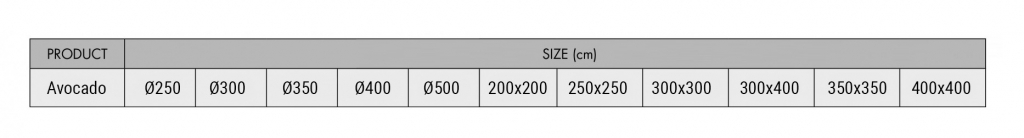 Зонт профессиональный Ø2.5 м Theumbrela Semsiye Evi Avocado Avocado- профессиональный зонт с центральной опорой из алюминия, что обеспечивает высокую устойчивость модели. Он защитит от ярких солнечных лучей и создаст приятную затененную атмосферу в частных садах, открытых летних площадках кафе, баров и ресторанов, зоны возле бассейна. Зонт Avocadoболее чем удовлетворит ваши потребностиблагодаря своей доступности и эстетике, прочности и долговечности. С системойверевочныйполиспастзонт открывается, потянув за веревку на корпусезонта. После того, как веревка натянута, и купол полностью открыт, зонт фиксируется путем наматывания веревки на крючок на корпусе зонта. Особенности: Алюминиевая центральная опора Ø50 мм и толщиной стенки 2 мм.Алюминий окрашен и прошел специальнуютермообработку, которая повышаетпрочность и коррозионную стойкость зонта. 8 алюминиевых спиц 20х30 мм, толщиной стенки 2 мм. Детали выполнены из цельного пластика. Возможно выполнение купола из тканей: полиэстер, олефин, акрил. Цвет купола из ткани олефин можно выбрать из представленной палитры. Ширина волана: 300 мм. Покрытие опоры и спиц можно выбрать из представленной палитры. Дополнительно можно приобрести утяжелительную базу весом 70 кг. Для заказа доступен дополнительный вентиляционный клапан, +10% к стоимости зонта. Открыть инструкцию поэксплуатации уличных зонтов. Цена на сайте указана за модель с куполом из олефина и фигурным одинарным воланом. Цены на другие модели Вы можете уточнить у менеджеров.
