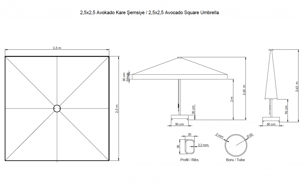 Зонт профессиональный 2.5х2.5 м Theumbrela Semsiye Evi Avocado, бежевый Avocado- профессиональный зонт с центральной опорой из алюминия, что обеспечивает высокую устойчивость модели. Он защитит от ярких солнечных лучей и создаст приятную затененную атмосферу в частных садах, открытых летних площадках кафе, баров и ресторанов, зоны возле бассейна. Зонт Avocadoболее чем удовлетворит ваши потребностиблагодаря своей доступности и эстетике, прочности и долговечности. С системойверевочныйполиспастзонт открывается, потянув за веревку на корпусезонта. После того, как веревка натянута, и купол полностью открыт, зонт фиксируется путем наматывания веревки на крючок на корпусе зонта. Особенности: Алюминиевая центральная опора Ø50 мм и толщиной стенки 2 мм.Алюминий окрашен и прошел специальнуютермообработку, которая повышаетпрочность и коррозионную стойкость зонта. 8 алюминиевых спиц 20х30 мм, толщиной стенки 2 мм. Детали выполнены из цельного пластика. Возможно выполнение купола из тканей: полиэстер, олефин, акрил. Цвет купола из ткани олефин можно выбрать из представленной палитры. Покрытие опоры и спиц можно выбрать из представленной палитры. Дополнительно можно приобрести утяжелительную базу весом 70 кг. Для заказа доступен дополнительный вентиляционный клапан, +10% к стоимости зонта. Открыть инструкцию поэксплуатации уличных зонтов. Цена на сайте указана за модель с куполом из бежевого полиэстера. Цены на другие модели Вы можете уточнить у менеджеров.
