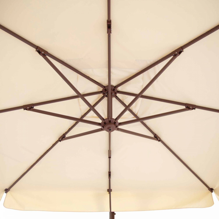 Зонт профессиональный 3х3 м Theumbrela Semsiye Evi Banana, черный, натуральный, черный Цена действительна при заказе от 8 шт.! Banana - профессиональный зонт с боковой опорой из алюминия, что обеспечивает его высокую устойчивость. Он защитит от ярких солнечных лучей и создаст приятную затененную атмосферу в частных садах, открытых летних площадках кафе, баров и ресторанов, зоны возле бассейна. Наличие боковой опоры зонта гарантирует, что тень зонта используется более эффективно, чем с зонтами с центральной стойкой. Зонты Banana изготавливаются разных размеров и форм с учетом различных областей применения и размеров затеняемой площади. Зонты квадратной формы можно поставить в ряд, чтобы полностью закрыть зону затенения. Это предлагает вам очень гибкое и экономичное решение по сравнению с перголой или другими типами навесов. Хотя это корпоративный продукт, предпочитаемый кафе, ресторанами и отелями, однако, зонт Banana также украшает многие сады и террасы. Это очень востребованная модель по таким причинам, как практичность и эргономика, возможность открывать и закрывать, не мешая тем, кто находится под зонтом, а также простота транспортировки и перемещения благодаря утяжелительной базе с колесным тормозом. Особенности: Боковая опора сечением 70х70 мм и толщиной стенки 2.5 мм выполнена из окрашенного алюминия со специальной термообработкой, которая повышает прочность и коррозионную стойкость зонта. 8 алюминиевых спиц 20х30 мм и толщиной стенки 2 мм. Детали выполнены из цельного пластика. Высота до кромки открытого купола: 2200 мм. В комплект входит металлическая база на колесах, размер: 790х710х60 мм, с мраморными утяжелителями, размер: 340х340х120 мм. Вес базы 24 кг, каждый утяжелитель 34 кг. Общий вес базы 160 кг. Размер упаковки: 850х750х100 мм. Механизм открывания и закрывания зонта обеспечивается поворотом лебедки, соединенной с механической системой передач на боковой части корпуса. Эта механическая система передач также имеет предохранительный замок для повышения безопасности. Даже если кронштейн зонта находится в разблокированном состоянии, он не повернется назад, и зонт не закроется. Как только вы открываете этот замок, кронштейн зонта возвращается на один уровень, позволяя закрыть зонт. Благодаря этому механизму, не требующему дополнительной силы, зонт легко открывается и закрывается. Купол выполнен из акрила 2926 (natural) с черным кантом. Функция вращения на 360º оплачивается дополнительно. Открыть инструкцию поэксплуатации уличных зонтов. Обращаем Ваше внимание! Плиты идут в подарок к зонту! В норме допускаются незначительные сколы и царапины мрамора по периметру, т.к. мрамор - это природный материал. На плиты рекламации не принимаются, Вы имеете право безвозмездно отказаться от них. Цена на сайте указана за модель с каркасом черного цвета и куполом из акрила с воланом с кантом. Цены на другие модели Вы можете уточнить у менеджеров.
