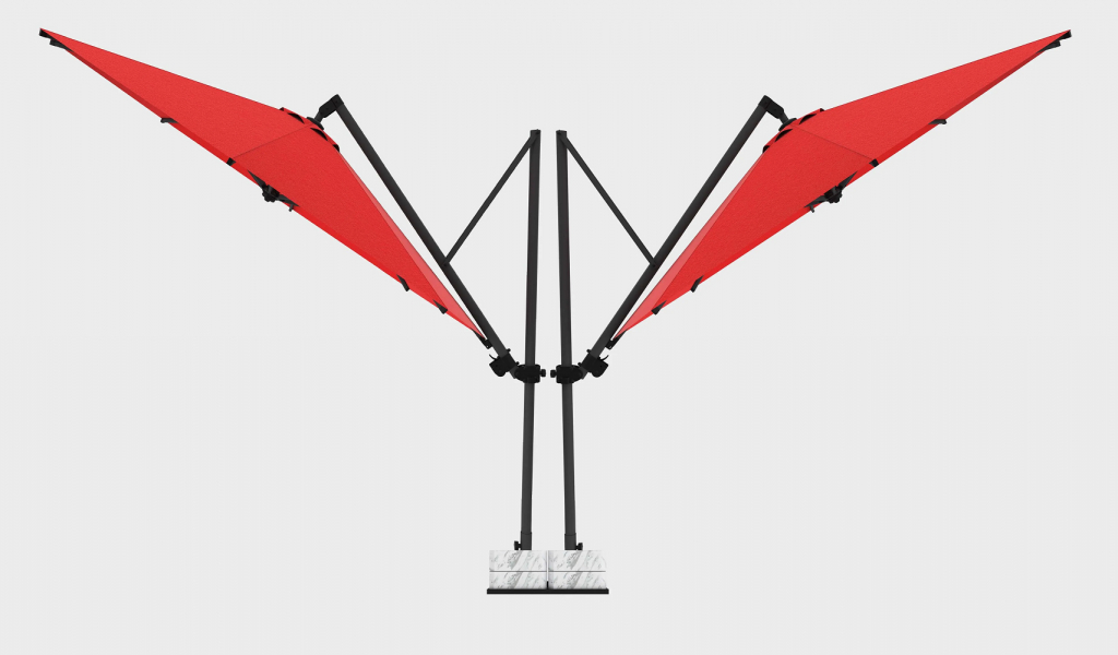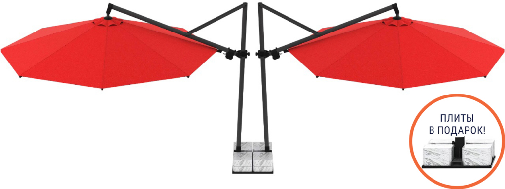 Зонт профессиональный двухкупольный Ø3.5х8.1 м Theumbrela Semsiye Evi Banana Plus Double, Banana Plus Double- новейшая модель двухкупольного зонта компанииTHEUMBRELA, которая предлагает ещебольше затенения. Две опоры и два зонта, открывающиеся по бокам, обеспечивают затененную уютную атмосферу на любых открытых площадках. Алюминиевая конструкция, европейская ткань и утяжелительная база гарантируют простое использование. Зонт сочетает всебе высококачественные материалы, впечатляющие технологии и простое управление. Это особенный продукт для тех, кто ищет крутой дизайн, стильный внешний вид и функциональность среди зонтов с боковой опорой. Благодаря утяжелительной базеобеспечивается достаточный баланс и давление.Зонты можно открывать независимо друг от друга при помощи рукоятки, а сами механизмы блокируются для безопасности. Качество вашего пространства будет повышено с помощью зонта Banana Plus Double, который является очень эстетичным и ярким решением для больших пространств. Особенности: Две опоры сечением 70х70 мм и толщиной стенки 2.5 мм выполненыиз окрашенного алюминия со специальной термообработкой, которая повышаетпрочность и коррозионную стойкость зонта. В каждом куполе 8 спиц из алюминия сечением20х30 мм и толщиной стенки 2.2 мм. Прочные пластиковые детали и соединительные элементы. Два купола размером Ø3500 мм каждый. Расстояние между куполами - 1100 мм. В комплект входит металлическая базана колесах с тормозами,размер: 790х710х60 мм,с мраморными утяжелителями, размер: 340х340х120 мм. Вес базы 24 кг, каждый утяжелитель 34 кг. Общий вес базы 160 кг. Размер упаковки: 850х750х100 мм. Возможно выполнение куполовиз тканей: бежевый полиэстер, олефин. Цвет купола из ткани олефин можно выбрать из представленной палитры. Дополнительно приобретаются: функциявращения на 360º, комплект из 4-х светильников с пультом дистанционного управления. Обращаем Ваше внимание! Плиты идут в подарок к зонту! В норме допускаются незначительные сколы и царапины мрамора по периметру, т.к. мрамор - это природный материал.На плиты рекламации не принимаются, Вы имеете право безвозмездно отказаться от них. Открыть инструкцию поэксплуатации уличных зонтов. Цена на сайте указана за модель с куполамииз ткани олефин. Цены на другие модели Вы можете уточнить у менеджеров.