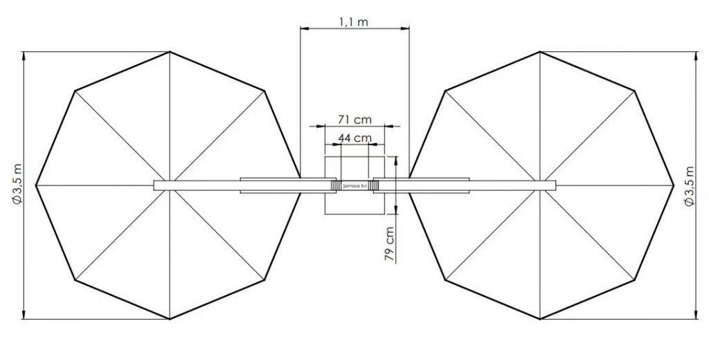 Вы можете купить Зонт профессиональный двухкупольный Ø3.5х8.1 м Theumbrela Semsiye Evi Banana Plus Double, оптом в нашем магазине, предложим цену с оптовой скидкой.