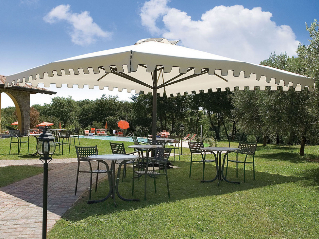 Зонт профессиональный телескопический 6х6 м Scolaro Capri Dark, антрацит, слоновая кость Профессиональный зонт Capri Dark разработан специально для затенения больших открытых пространств, при этом он сам занимает небольшую площадь. Повышенная прочность материалов конструкции и телескопическая система открытия-закрытия зонта, при использовании которой нет необходимости передвигать мебель под зонтом, позволяют использовать Capri Dark в уличных кафе и ресторанах. Каркас и спицы выполнены из алюминия с порошковым покрытием с усиленными стальными элементами, усиленные спицы - из алюминия. Цвет каркаса - антрацит. Купол выполнен из акрила 350 г/м² с пропиткой. Варианты цвета: слоновая кость (A1), терракота (T2), бордовый (T3), серо-коричневый (T6), белый (T7), серебристо-серый (T8), антрацит (T9), черный (S1). Цена на сайте указана для зонта с куполом в цвете слоновая кость (A1) с воланом. По запросу доступно выполнение купола из акрила Special Collection класса A и B (минимальный заказ 5 шт.). Технические характеристики зонта: высота общая открытого зонта 5400 мм; высота общая закрытого зонта 3500 мм; высота до кромки открытого зонта: 2300 мм; высота до кромки закрытого зонта: 1000 мм; Посмотреть технические характеристики модели. Посмотреть инструкцию по установке зонта. Таблица выбора утяжелительных баз для стабилизации зонта. В комплект поставки входит: Каркас. Купол с воланом, механизм открытия-закрытия, система телескопического поднятия зонта, вентиляционный (ветровой) клапан. Система быстрой замены спиц "Easy Change". База для утяжеляющих плит. Видео, демонстрирующее устойчивость зонта в ветреную погоду. Открыть инструкцию по эксплуатации уличных зонтов. Компания Scolaro создана 50 лет назад и была известна как ремесленное производство деревянных зонтиков. Традиционные позиции и современные знания позволили Scolaro выпускать широкий спектр зонтов, которые позволяют не только укрываться от солнца и дождя, но и являются прекрасным дополнением интерьера стильных заведений. Дизайн, новые технические решения и сочетание высококачественных материалов имеют решающее значение для технической эволюции зонтов Scolaro, процесс производства которых является полностью итальянским. Наша компания - официальный эксклюзивный дистрибьютор фабрики Scolaro Mario & Fabio srl. в России. На все зонты компании Scolaro предоставляется сервисное и гарантийное обслуживание. Для того, чтоб зонт прослужил долго, воспользуйтесь инструкциями по эксплуатации и хранению зонтов.