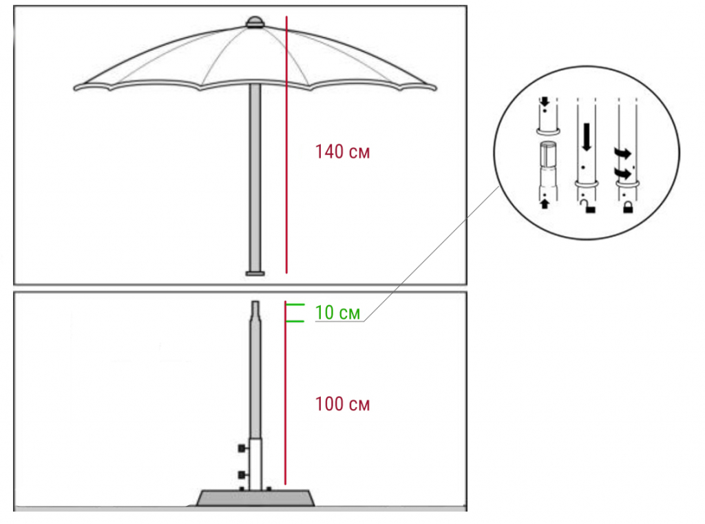 Зонт пляжный профессиональный Ø2.2 м Magnani Cezanne Зонт Cezanne- элегантная модель для оборудования морских пляжей. Он также прекрасно подходит для бассейнов, садов, летних площадок ресторанов, гостиниц.Легко сочетается с различными моделями лежаков, шезлонгов и кресел Magnani. Особенности модели: опора (диаметр 40 мм, длина 1400 мм) выполнена из анодированного алюминия; байонетная система блокировки во время ветра; система безопасного открытия/закрытия Diamante; ручка из нержавеющей стали; 10 спиц из оцинкованной и окрашенной стали, стойкие к действию соленой воды и других атмосферных явлений (110/10 cm/n°); купол выполнен из ткани Tempotest Para mare - 100% окрашенный акрил плотностью 290 г/м², гарантия от выцветания в течение 6 лет. по запросу доступныдополнительные аксессуары:пластиковый столик, база для зонта, пепельница, ветровой клапан (приобретаются отдельно). В комплект входитнижняя алюминиевая стойка (Lower Pole) Ø40 мм. Высота стойки может составлять 800 мм, 1000 мм, 1200 мм. Может быть выполненас острием или без. Посмотреть технические характеристики модели.