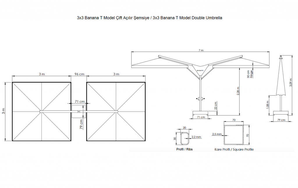 Вы можете купить Зонт профессиональный двухкупольный 6х3 м Theumbrela Semsiye Evi Double Banana T, бежевый оптом в нашем магазине, предложим цену с оптовой скидкой.
