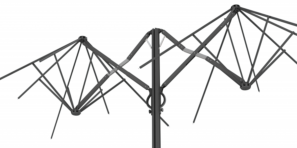 Зонт профессиональный двухкупольный 2.9х6.3 м Scolaro Galaxia Dual T Timber, имитация ироко, серебристо-серый Scolaro создала новое будущее для жизни на открытом воздухе, в котором доминируют: технологии, эргономика, дизайн, инновации. Мудрость и мастерство итальянских мастеров развивались и совершенствовались благодаря точным и целенаправленным исследованиям, технологиям и инжинирингу, получая космические результаты: серию Galaxia. Серия Galaxia Dual Timber - это эволюция зонта Astro. Возможны два варианты Dual T и Dual V, отличающиеся креплением куполов к опоре. Алюминиевый каркас выполнен с эпоксидным покрытием антрацитового или белого цвета. Эта модель - отличное решение для больших открытых пространств. Выдвижной механизм обеспечивает возможность открывать и закрывать куполы над столами и стульями без перемещения мебели. Каркас зонта и спицы выполнены из алюминия с порошковым покрытием в цвете антрацит (Carbon) или белый (Starwhite). Винты из нержавеющей стали и никелированной латуни. Каждый купол выполнен из акрила 350 г/м² с пропиткой. Варианты цвета: слоновая кость (A1), терракота (T2), бордовый (T3), серо-коричневый (T6), белый (T7), серебристо-серый (T8), антрацит (T9), черный (S1). Цена на сайте указана для зонта с куполом в цвете слоновая кость (T8) без волана. По запросу доступно выполнение купола из акрила Special Collection класса A и B (минимальный заказ 5 шт.). Технические характеристики: высота открытого зонта: 2700 мм; высота закрытого зонта: 2950 мм; высота до кромки открытого зонта: 2350 мм; высота до кромки закрытого зонта: 900 мм; общая длина: зонта: 6300 мм, общая ширина: зонта: 2900 мм; расстояние между куполами: 500 мм; высота до нижней части каркаса: 2050 мм; высота до механизма открытия: 1900 мм. Посмотреть технические характеристики. Посмотреть инструкцию по установке зонта. Таблица выбора утяжелительных баз для стабилизации зонта. В комплект поставки входит: Каркас с поворотным механизмом (360°). Два купола, механизм открытия-закрытия, вентиляционная заглушка (ветровой клапан). Система быстрой замены спиц "Easy Change". База для утяжеляющих плит. Открыть инструкцию по эксплуатации уличных зонтов. Компания Scolaro создана 50 лет назад и была известна как ремесленное производство деревянных зонтиков. Традиционные позиции и современные знания позволили Scolaro выпускать широкий спектр зонтов, которые позволяют не только укрываться от солнца и дождя, но и являются прекрасным дополнением интерьера стильных заведений. Дизайн, новые технические решения и сочетание высококачественных материалов имеют решающее значение для технической эволюции зонтов Scolaro, процесс производства которых является полностью итальянским. Наша компания - официальный эксклюзивный дистрибьютор фабрики Scolaro Mario & Fabio srl. в России. На все зонты компании Scolaro предоставляется сервисное и гарантийное обслуживание. Для того, чтоб зонт прослужил долго, воспользуйтесь инструкциями по эксплуатации и хранению зонтов.