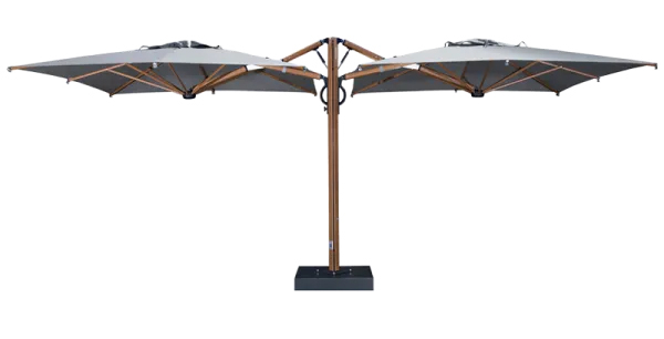 Вы можете купить Зонт профессиональный двухкупольный 2.9х6.3 м Scolaro Galaxia Dual T Timber, имитация ироко, серебристо-серый оптом в нашем магазине, предложим цену с оптовой скидкой.