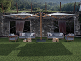 Вы можете купить Зонт профессиональный двухкупольный 3.5х7.5 м Scolaro Galaxia Dual T Timber, имитация ироко, серебристо-серый оптом в нашем магазине, предложим цену с оптовой скидкой.