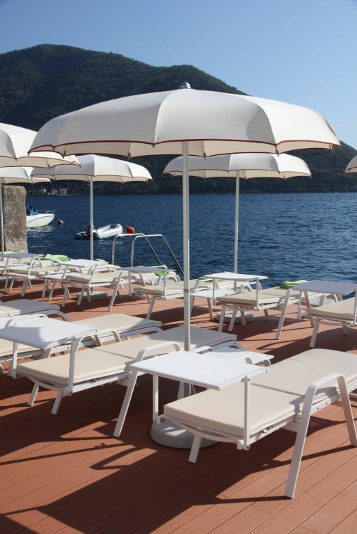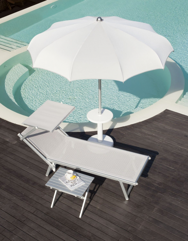 Зонт пляжный профессиональный Ø2 м Magnani Klee Зонт Klee - элегантная модель с изогнутыми спицами придает изысканности пляжам, бассейнам, открытым площадкам. Дизайн модели увеличивает сопротивление порывам ветра, не допуская опрокидывание. Зонт легко сочетается с различными моделями лежаков, шезлонгов и кресел Magnani. Особенности модели: опора (диаметр 40 мм, длина 1400 мм) выполнена из анодированного алюминия; байонетная система блокировки во время ветра; система безопасного открытия/закрытия Diamante; ручка из нержавеющей стали; 10 спиц из оцинкованной и окрашенной стали, стойкие к действию соленой воды и других атмосферных явлений (110/10 cm/n°); длина спицы 1100 мм, т.к. спицы не прямые, диаметр купола приблизительно 1800 мм; кривизна спиц увеличивает аэродинамическое сопротивление; купол выполнен из ткани Tempotest Para mare - 100% окрашенный акрил плотностью 290 г/м², гарантия от выцветания в течение 6 лет. по запросу доступныдополнительные аксессуары:пластиковый столик, база для зонта, пепельница, механизм наклона, ветровой клапан (приобретаются отдельно). В комплект входитнижняя алюминиевая стойка (Lower Pole) Ø40 мм. Высота стойки может составлять 800 мм, 1000 мм, 1200 мм. Может быть выполненас острием или без.
