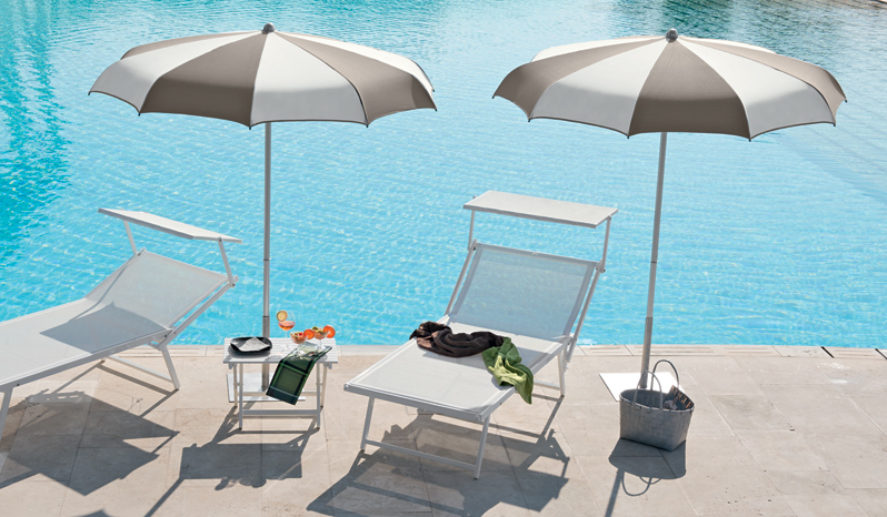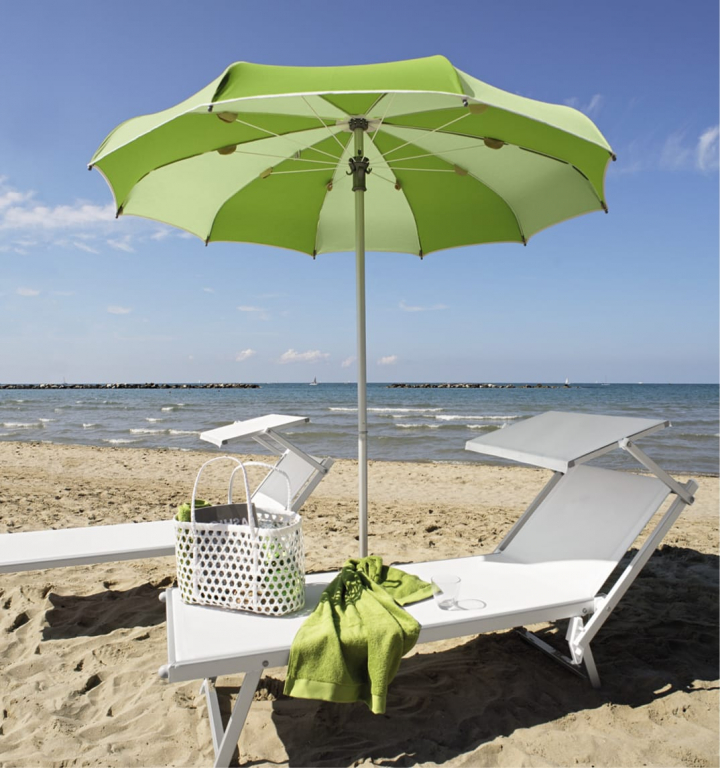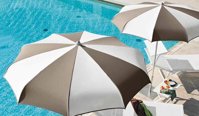 Зонт пляжный профессиональный Ø2.5 м Magnani Klee Зонт Klee - элегантная модель с изогнутыми спицами придает изысканности пляжам, бассейнам, открытым площадкам. Дизайн модели увеличивает сопротивление порывам ветра, не допуская опрокидывание. Зонт легко сочетается с различными моделями лежаков, шезлонгов и кресел Magnani. Особенности модели: опора (диаметр 40 мм, длина 1500 мм) выполнена из анодированного алюминия; байонетная система блокировки во время ветра; система безопасного открытия/закрытия Diamante; ручка из нержавеющей стали; 10 спиц из оцинкованной и окрашенной стали, стойкие к действию соленой воды и других атмосферных явлений (130/10 cm/n°); длина спицы 1300 мм, т.к. спицы не прямые, диаметр купола приблизительно 2200 мм; кривизна спиц увеличивает аэродинамическое сопротивление; купол выполнен из ткани Tempotest Para mare - 100% окрашенный акрил плотностью 290 г/м², гарантия от выцветания в течение 6 лет. по запросу доступныдополнительные аксессуары:пластиковый столик, база для зонта, пепельница, механизм наклона, ветровой клапан (приобретаются отдельно). В комплект входитнижняя алюминиевая стойка (Lower Pole) Ø40 мм. Высота стойки может составлять 800 мм, 1000 мм, 1200 мм. Может быть выполненас острием или без.