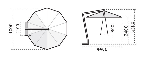 Вы можете купить Зонт профессиональный Ø4 м Scolaro Leonardo Braccio, антрацит, слоновая кость оптом в нашем магазине, предложим цену с оптовой скидкой.