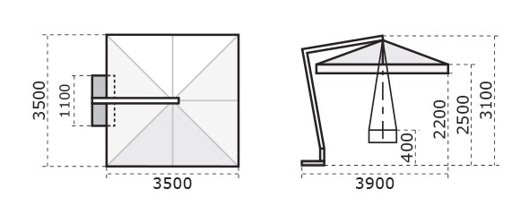 Вы можете купить Зонт профессиональный 3.5х3.5 м Scolaro Leonardo Braccio, антрацит, слоновая кость оптом в нашем магазине, предложим цену с оптовой скидкой.