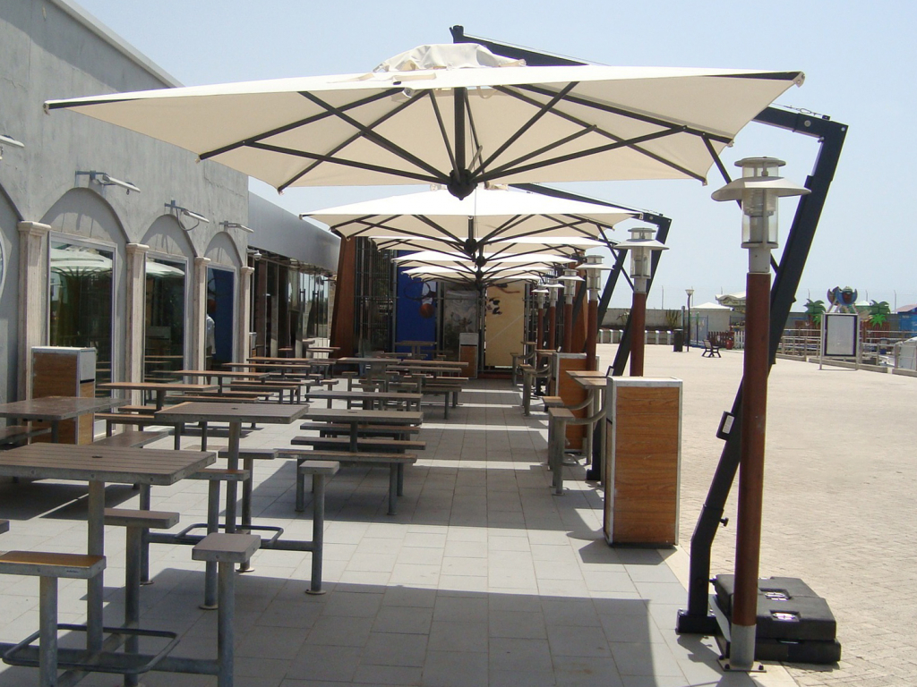 Вы можете купить Зонт профессиональный 4х4 м Scolaro Leonardo Braccio, антрацит, слоновая кость оптом в нашем магазине, предложим цену с оптовой скидкой.