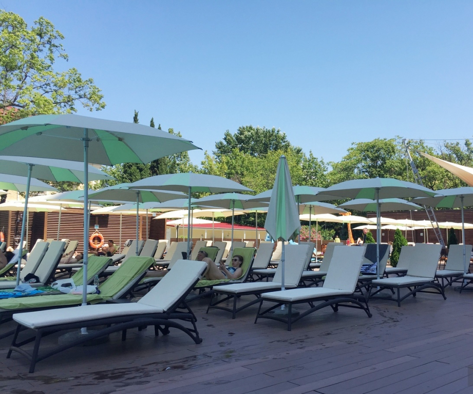 Зонт пляжный профессиональный 1.8х1.8 м Magnani Mondrian Зонт Mondrian- оригинальная модель, которая придает эстетичность пляжам, бассейнам, открытым площадкам. Благодаря своим размерам увеличивает размер затененного пространства, по сравнению с другими моделями.Зонт легко сочетается с различными моделями лежаков, шезлонгов и кресел Magnani. Особенности модели: опора (диаметр 40 мм, длина 1400 мм) выполнена из анодированного алюминия; система блокировки, которая не допускает вращение зонта; система безопасного открытия/закрытия Platinum; ручка из нержавеющей стали; 8 спиц из оцинкованной стали с порошковым покрытием, стойкие к действию соленой воды и других атмосферных явлений (110/8 cm/n°); купол выполнен из ткани Tempotest Para mare - 100% окрашенный акрил плотностью 290 г/м², гарантия от выцветания в течение 6 лет. по запросу доступныдополнительные аксессуары:пластиковый столик, база для зонта, пепельница, механизм наклона, ветровой клапан (приобретаются отдельно). В комплект входитнижняя алюминиевая стойка (Lower Pole) Ø40 мм. Высота стойки может составлять 800 мм, 1000 мм, 1200 мм. Может быть выполненас острием или без.