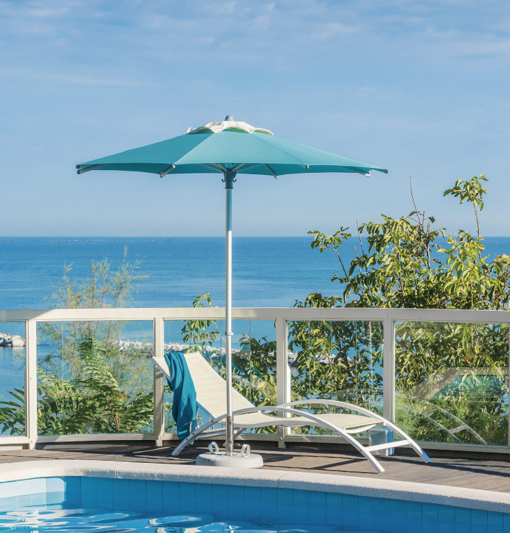 Зонт пляжный профессиональный Ø2.2 м Magnani Picasso Зонт Piсasso - модель, представляющая собой идеальное сочетание технологии и эстетики. Она придает пляжам, бассейнам, открытые летним площадкам современный стиль.Зонт легко сочетается с различными моделями лежаков, шезлонгов и кресел Magnani. Особенности модели: опора (диаметр 45 мм, длина 1650 мм) выполнена из анодированного алюминия; система блокировки во время ветра; система безопасного открытия/закрытия Diamante; ветровой клапан,который помогает зонту выдерживать сильные порывы ветра; 8 спиц из алюминия размером сечения 23х13 мм повышают устойчивость зонта к порывам ветра и увеличивают стойкость к соленому воздуху и воде и другим атмосферным воздействиям (125/8cm/n°); купол выполнен из ткани Tempotest Para mare - 100% окрашенный акрил плотностью 290 г/м², гарантия от выцветания в течение 6 лет. по запросу доступныдополнительные аксессуары:пластиковый столик, база для зонта, пепельница (приобретаются отдельно). Возможные размеры зонта:2000х2000 мм;2200х2200 мм; 2500х2500 мм;Ø2200 мм; Ø2500 мм; Ø3000 мм. В комплект входитнижняя алюминиевая стойка (Lower Pole) Ø40 мм.Высота стойки может составлять 800 мм, 1000 мм, 1200 мм. Может быть выполненас острием или без.