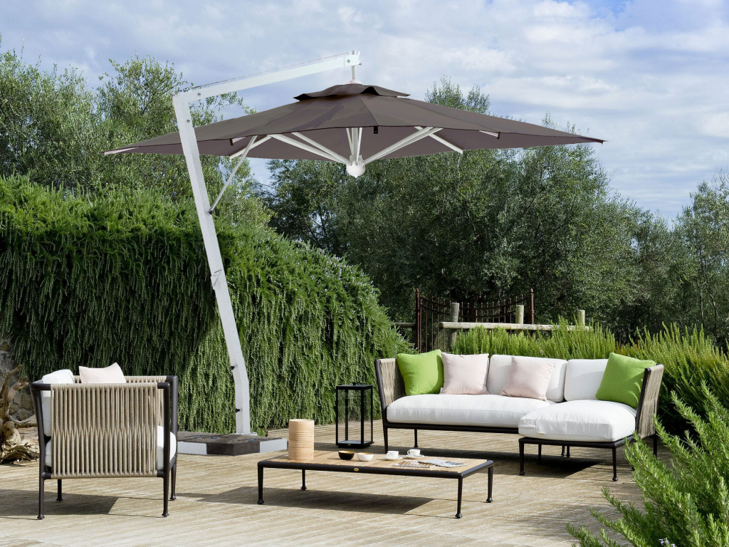 Зонт профессиональный 3х3 м Scolaro Rimini Braccio, белый, серо-коричневый Rimini Braccio гармонично впишется в современные изысканные открытые пространства. Обновленная модель с полностью алюминиевым каркасом белого цвета прекрасно подойдет для открытых площадок кафе и ресторанов, лаунж-зон возле бассейна и частных садов. Каркас и спицы выполнены из алюминия с порошковым покрытием белого цвета (Starwhite), детали - из стали, аксессуары - из нейлона. Специальное крепление к опоре (Wind Stop) для лучшей устойчивости в ветренную погоду и для обеспечения наклона зонта. Возможность наклона зонта на 20°. Купол выполнен из акрила 350 г/м² с пропиткой. Варианты цвета: слоновая кость (A1), терракота (T2), бордовый (T3), серо-коричневый (T6), белый (T7), серебристо-серый (T8), антрацит (T9), черный (S1). Цена на сайте указана для зонта с куполом в серо-коричневом цвете (T6) без волана. По запросу доступно выполнение купола из акрила Special Collection класса A и B (минимальный заказ 5 шт.). Технические характеристики: высота до кромки открытого зонта: 2400 мм; высота до кромки закрытого зонта: 800 мм; общая длина 3600 мм (включая базу), общая ширина 3000 мм. Посмотреть технические характеристики. Посмотреть инструкцию по установке зонта. Таблица выбора утяжелительных баз для стабилизации зонта. В комплект поставки входит: Каркас с поворотным механизмом (360°). Купол, механизм открытия-закрытия, вентиляционная заглушка (ветровой клапан). Система быстрой замены спиц "Easy Change". База для утяжелительных плит. Открыть инструкцию по эксплуатации уличных зонтов. Компания Scolaro создана 50 лет назад и была известна как ремесленное производство деревянных зонтиков. Традиционные позиции и современные знания позволили Scolaro выпускать широкий спектр зонтов, которые позволяют не только укрываться от солнца и дождя, но и являются прекрасным дополнением интерьера стильных заведений. Дизайн, новые технические решения и сочетание высококачественных материалов имеют решающее значение для технической эволюции зонтов Scolaro, процесс производства которых является полностью итальянским. Наша компания - официальный эксклюзивный дистрибьютор фабрики Scolaro Mario & Fabio srl. в России. На все зонты компании Scolaro предоставляется сервисное и гарантийное обслуживание. Для того, чтоб зонт прослужил долго, воспользуйтесь инструкциями по эксплуатации и хранению зонтов.