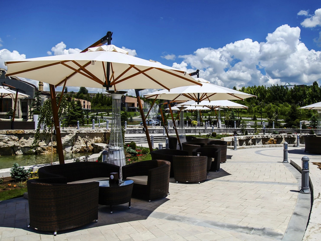 Зонт профессиональный Ø3.5 м Scolaro Torino Braccio, имитация ироко, слоновая кость Torino Braccio - классическая модель с использованием натуральных материалов, которые делают зонт легким и удобным. Алюминиевая опора с отделкой под дерево улучшает рабочие характеристики без изменения внешнего вида. Профессиональный зонт с боковой опорой подойдет для создания тени в частных и коммерческих открытых пространствах. Каркас выполнен из алюминия с имитацией дерева ироко, спицы - из дерева ироко, детали - из алюминия с порошковым покрытием цвета антрацит, винты - из нержавеющей стали и никелированной латуни. Специальное крепление к опоре (Wind Stop) для лучшей устойчивости в ветренную погоду и для обеспечения наклона зонта. Возможность наклона зонта на 20°. Купол выполнен из акрила 350 г/м² с пропиткой. Варианты цвета: слоновая кость (A1), терракота (T2), бордовый (T3), серо-коричневый (T6), белый (T7), серебристо-серый (T8), антрацит (T9), черный (S1). Цена на сайте указана для зонта с куполом в цвете слоновая кость (A1) без волана. По запросу доступно выполнение купола из акрила Special Collection класса A и B (минимальный заказ 5 шт.). Технические характеристики: высота до кромки открытого зонта: 2300 мм; высота до кромки закрытого зонта: 1000 мм; общая длина: 3900 мм (включая базу), общая ширина: 3500 мм. Посмотреть технические характеристики. Посмотреть инструкцию по установке зонта. Таблица выбора утяжелительных баз для стабилизации зонта. В комплект поставки входит: Каркас с поворотным механизмом (360°). Купол, механизм открытия-закрытия, вентиляционная заглушка (ветровой клапан). Система быстрой замены спиц "Easy Change". База для утяжелительных плит. Открыть инструкцию по эксплуатации уличных зонтов. Компания Scolaro создана 50 лет назад и была известна как ремесленное производство деревянных зонтиков. Традиционные позиции и современные знания позволили Scolaro выпускать широкий спектр зонтов, которые позволяют не только укрываться от солнца и дождя, но и являются прекрасным дополнением интерьера стильных заведений. Дизайн, новые технические решения и сочетание высококачественных материалов имеют решающее значение для технической эволюции зонтов Scolaro, процесс производства которых является полностью итальянским. Наша компания - официальный эксклюзивный дистрибьютор фабрики Scolaro Mario & Fabio srl. в России. На все зонты компании Scolaro предоставляется сервисное и гарантийное обслуживание. Для того, чтоб зонт прослужил долго, воспользуйтесь инструкциями по эксплуатации и хранению зонтов.