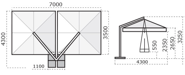 Зонт профессиональный двухкупольный 3.5х7 м Scolaro Wood Double, имитация ироко, слоновая кость Wood Double состоит из двух отдельных зонтов, закрепленных на одной центральной опоре. Модель - элегантный образец дизайна с особым вниманием к деталям и отделке. Двухкупольный зонт подходит для затенения больших пространств, при этом занимает минимум площади. Каркас выполнен из алюминия с отделкой под дерево ироко, спицы - из дерева ироко. Стальные элементы с покрытием порошковой краской цвета антрацит. Аксессуары из нейлона с новым, еще более прочным механизмом. Специальное крепление к опоре (Wind Stop) для лучшей устойчивости в ветренную погоду и для обеспечения наклона зонта. Каждый купол выполнен из акрила 350 г/м² с пропиткой. Варианты цвета: слоновая кость (A1), терракота (T2), бордовый (T3), серо-коричневый (T6), белый (T7), серебристо-серый (T8), антрацит (T9), черный (S1). Цена на сайте указана для зонта с куполом в цвете слоновая кость (A1) с воланом. По запросу доступно выполнение купола из акрила Special Collection класса A и B (минимальный заказ 5 шт.). Технические характеристики зонта: высота общая 3250 мм; высота до кромки открытого зонта: 2350мм; высота до кромки закрытого зонта: 550 мм; общая ширина: 4300 мм (включая базу), общая длина: 7000 мм; размер каждого купола 3500х3500 мм. Посмотреть технические характеристики. Посмотреть инструкцию по установке зонта. Таблица выбора утяжелительных баз для стабилизации зонта. В комплект поставки входит: Каркас с поворотным механизмом (360°). Два купола с воланом, механизм открытия-закрытия, вентиляционная заглушка (ветровой клапан). Система быстрой замены спиц "Easy Change". База для утяжелительных плит. Открыть инструкцию по эксплуатации уличных зонтов. Компания Scolaro создана 50 лет назад и была известна как ремесленное производство деревянных зонтиков. Традиционные позиции и современные знания позволили Scolaro выпускать широкий спектр зонтов, которые позволяют не только укрываться от солнца и дождя, но и являются прекрасным дополнением интерьера стильных заведений. Дизайн, новые технические решения и сочетание высококачественных материалов имеют решающее значение для технической эволюции зонтов Scolaro, процесс производства которых является полностью итальянским. Наша компания - официальный эксклюзивный дистрибьютор фабрики Scolaro Mario & Fabio srl. в России. На все зонты компании Scolaro предоставляется сервисное и гарантийное обслуживание. Для того, чтоб зонт прослужил долго, воспользуйтесь инструкциями по эксплуатации и хранению зонтов.