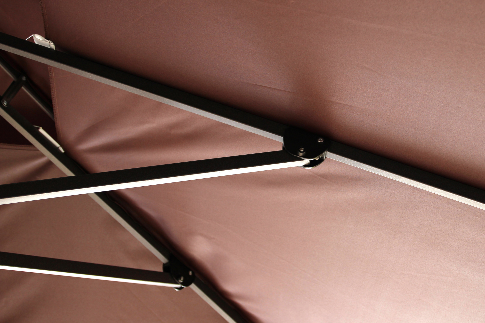 Габариты изделия (Ш/ГхДхВ) : 297х297 Габариты элементов (Ш/ГхДхВ) : длина крыши 297см, высота стойки макс 270 см (стойка регулируется по высоте для этого предназначены отверстия на стойки), размер профильной стойки 8х4 см От пола до крыши зонта ( макс поднятие) 202 см От пола по центру зонта до верхней точки купола 270 см. Глубина конструкции внутри зонта по центру 55 см Толщина спицы 2,5х1,5 см., размер поперечной стойки 100х100 см, толщина металла стойки 2 и 3 мм, толщина металла спиц 0,5 мм Дополнительно : ветровая нагрузка:5,5-7,9 м/с, плиты в комплект не входит, обязательное условие эксплуатации зонта - противовес из 4-х бетонных тротуарных плит Страна производства : КИТАЙХарактеристики
