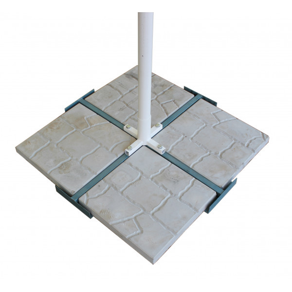 Зонт устанавливается на стальную подставку рассчитанную на четыре бетонные плиты размером 40х40 . Плиты (утяжелители) в комплекте не поставляются!!!