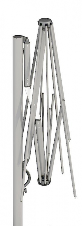 Уникальный зонт Astro Titanium - футуристический продукт, подходящий для современных открытых пространств в стиле минимализм. Больше не нужны механизмы и тросы для открытия зонта, данная новинка работает на газовом поршне. Легким нажатием кнопки зонт плавно открывается и закрывается. Кроме того, новая система открытия-закрытия позволяет не убирать из-под зонта мебель, зонт аккуратно придвигается к опоре и не нависает над мебелью. Каркас и спицы выполнены из алюминия в титановом цвете, детали - из нержавеющей стали, аксессуары - из нейлона ABS, винты из нержавеющей стали и никелированной латуни. Купол выполнен из акрила 350 г/м² с пропиткой. Варианты цвета: слоновая кость (A1), терракота (T2), бордовый (T3), серо-коричневый (T6), белый (T7), серебристо-серый (T8), антрацит (T9), черный (S1). Цена на сайте указана для зонта с куполом в цвете слоновая кость (A1) без волана. По запросу доступно выполнение купола из акрила Special Collection класса A и B (минимальный заказ 5 шт.). Инновационный выдвижной механизм позволяет открывать и закрывать зонт одним движением, не задевая мебель под ним. Технические характеристики: высота до кромки открытого зонта: 2400 мм; высота до кромки закрытого зонта: 600 мм; общая длина: 4300 мм (включая базу); общая ширина: 3500 мм. Посмотреть технические характеристики. Посмотреть инструкцию по установке зонта. Таблица выбора утяжелительных баз для стабилизации зонта. В комплект поставки входит: Каркас с поворотным механизмом (360°). Купол, механизм открытия-закрытия, вентиляционная заглушка (ветровой клапан). Система быстрой замены спиц "Easy Change". База для утяжеляющих плит. Открыть инструкцию по эксплуатации уличных зонтов. Компания Scolaro создана 50 лет назад и была известна как ремесленное производство деревянных зонтиков. Традиционные позиции и современные знания позволили Scolaro выпускать широкий спектр зонтов, которые позволяют не только укрываться от солнца и дождя, но и являются прекрасным дополнением интерьера стильных заведений. Дизайн, новые технические решения и сочетание высококачественных материалов имеют решающее значение для технической эволюции зонтов Scolaro, процесс производства которых является полностью итальянским. Наша компания - официальный эксклюзивный дистрибьютор фабрики Scolaro Mario & Fabio srl. в России. На все зонты компании Scolaro предоставляется сервисное и гарантийное обслуживание. Для того, чтоб зонт прослужил долго, воспользуйтесь инструкциями по эксплуатации и хранению зонтов.Характеристики