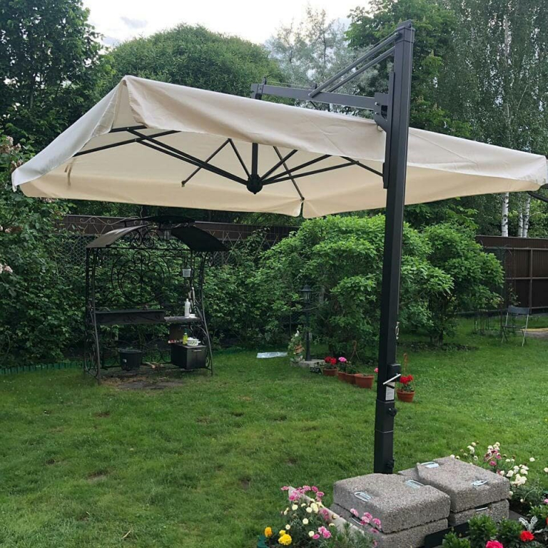 Профессиональный зонт Galileo Dark - модель с обновленной выдвижной системой открытия-закрытия зонта, которая позволяет легко закрывать зонт, не передвигая мебель. Это лучшая система, разработанная Scolaro, которая имеет несомненные преимущества: функциональность; эстетичность; возможность легко отремонтировать (заменить) испорченные детали. Зонт Galileo Dark имеет уникальную конструкцию, которая позволяет легко отсоединить зонт от каркаса, например для очистки ткани зонта или замены спиц. Однако, не рекомендуется проделывать эту операцию слишком часто - это может привести к поломке механизма закрытия зонта. Каркас и спицы выполнены из алюминия с порошковым покрытием цвета антрацит, аксессуары - из нейлона. Специальное крепление к опоре (Wind Stop) для лучшей устойчивости в ветренную погоду и для обеспечения наклона зонта. Возможность наклона зонта на 60°. Купол выполнен из акрила 350 г/м² с пропиткой. Варианты цвета: слоновая кость (A1), терракота (T2), бордовый (T3), серо-коричневый (T6), белый (T7), серебристо-серый (T8), антрацит (T9), черный (S1). Цена на сайте указана для зонта с куполом в цвете слоновая кость (A1) с воланом. По запросу доступно выполнение купола из акрила Special Collection класса A и B (минимальный заказ 5 шт.). Технические характеристики: высота до кромки открытого зонта: 2150 мм; высота до кромки закрытого зонта: 500 мм. общая длина:4200 мм (включая базу), общая ширина: 4000 мм. Посмотреть технические характеристики. Посмотреть инструкцию по установке зонта. Таблица выбора утяжелительных баз для стабилизации зонта. В комплект поставки входит: Каркас с поворотным механизмом (360°). Купол с воланом, механизм открытия-закрытия, вентиляционная заглушка (ветровой клапан). Система быстрой замены спиц "Easy Change". База для утяжелительных плит. Открыть инструкцию по эксплуатации уличных зонтов. Компания Scolaro создана 50 лет назад и была известна как ремесленное производство деревянных зонтиков. Традиционные позиции и современные знания позволили Scolaro выпускать широкий спектр зонтов, которые позволяют не только укрываться от солнца и дождя, но и являются прекрасным дополнением интерьера стильных заведений. Дизайн, новые технические решения и сочетание высококачественных материалов имеют решающее значение для технической эволюции зонтов Scolaro, процесс производства которых является полностью итальянским. Наша компания - официальный эксклюзивный дистрибьютор фабрики Scolaro Mario & Fabio srl. в России. На все зонты компании Scolaro предоставляется сервисное и гарантийное обслуживание. Для того, чтоб зонт прослужил долго, воспользуйтесь инструкциями по эксплуатации и хранению зонтов.Характеристики