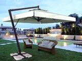 Купол выполнен из акрила 350 г/м² с пропиткой. Варианты цвета: слоновая кость (A1), терракота (T2), бордовый (T3), серо-коричневый (T6), белый (T7), серебристо-серый (T8), антрацит (T9), черный (S1). Цена на сайте указана для зонта с куполом в цвете слоновая кость (A1) с воланом.