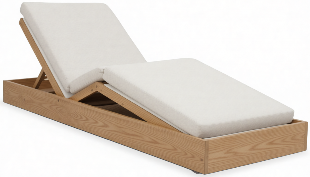 Шезлонг-лежак деревянный с матрасом Tagliamento Pangea, светлый тик, бежевый