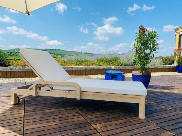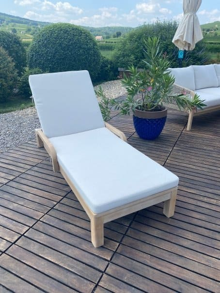 Rimini - это современный садовый шезлонг, выполненный в комбинации массива ТИКА и бежевого матраса. Цвет натуральной твердой древесины представляет собой натуральный цвет с мелкой текстурой, придающий древесине приятный теплый вид. Rimini - это стиль и элегантность на Вашей веранде. Особенности: Шезлонг выполнен из МАССИВА ТИКА. Тик - это лиственное дерево твердых пород, которое происходит из высокогорья. Никакая другая древесина не обладает такой исключительной прочностью и долговечностью, как тик. Его уникальная текстура и кожистый запах обусловлены высоким содержанием масла. Эти характеристики в сочетании с высокой плотностью древесины предотвращают коробление и гниение, позволяя мебели оставаться на открытом воздухе в любых условиях без ухода или защитных средств. Древесина тика сертифицирована INDO TLAS - SVLK и FSC. Знак FSC - показатель того, что продукция происходит из леса, в котором ведется экологически и социально ответственное лесное хозяйство. Страна происхождения древесины: Индонезия. Анодированная фурнитура из нержавеющей стали. Возможность регулировать спинку в нескольких положениях. Колеса для перемещения. Матрас в комплекте, ткань - олефин, цвет матраса бежевый. Материалы устойчивы к УФ-излучению и другим погодным воздействиям. Открыть инструкцию по уходу.Характеристики