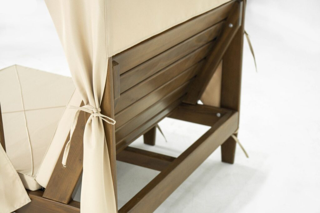 Шезлонг-лежак Vendy – это специально разработанное место для отдыха малышей, обеспечивающее максимальную защиту от солнца. Трехсторонний солнцезащитный козырек с УФ-фильтрами надежно защищает нежную кожу ребенка от чрезмерного воздействия солнечных лучей. Шезлонг прекрасно подойдет для сада, террасы, пляжа или поездки на дачу. Особенности: Лежак полностью выполнен из ироко - это африканский дуб, порода дерева, отличающегося своей повышенной прочностью и долговечностью. Структура дерева отделана наилучшим способом, дарит приятные бархатистые ощущения от прикосновения. Мебель из ироко допускает круглогодичную эксплуатацию на открытом воздухе, выдерживает перепады температур от –30°C до +30°C. Оптимальные размеры, разработанные с учетом особенностей детской анатомии, обеспечивая удобное и безопасное положение для отдыха. Матрас и навес выполнен из олефина. Ткань Olefin обеспечивает комфортное использование благодаря своей прочной и легкой структуре. Это незаменимый спаситель уличных пространств благодаря своей быстрой сушке и устойчивости к истиранию, солнечному свету, грязи и пятнам, а также к ухудшению состояния, вызванному химикатами, потом, плесенью, и погодными условиями. Возможные цвета ткани указаны в палитре на сайте. Инструкция по уходу. Цена указана за модель в комплекте с матрасом. Для уточнения всех возможных вариантов материала и цвета данного изделия обращайтесь к нашим менеджерам.Характеристики