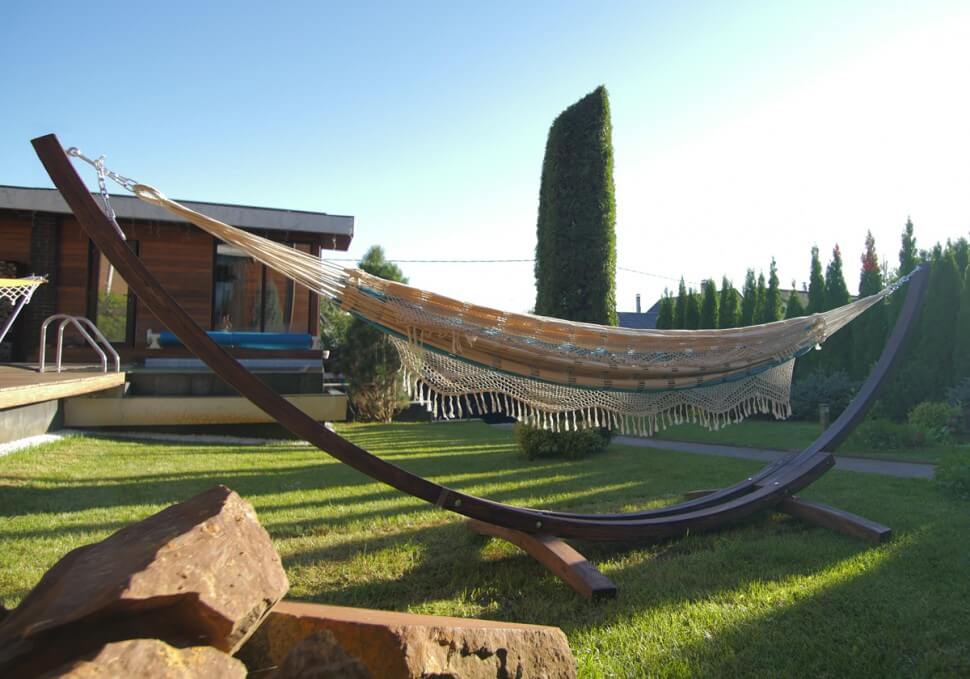 Стильный и роскошный каркас с выбранным на нашем сайте гамаком непременно украсит участок Вашего загородного дома. Легкая сборка, пропитка дерева, прочность и оригинальность конструкции каркаса позволяют отдыхать с максимальным комфортом в гамаке, по-настоящему расслабиться. Материал: Дерево Вид мебели: Каркас для гамака и кресел. Размеры каркаса: 430х146х118 см Материал каркаса: дерево Выдерживаемый вес: 250 кгХарактеристики