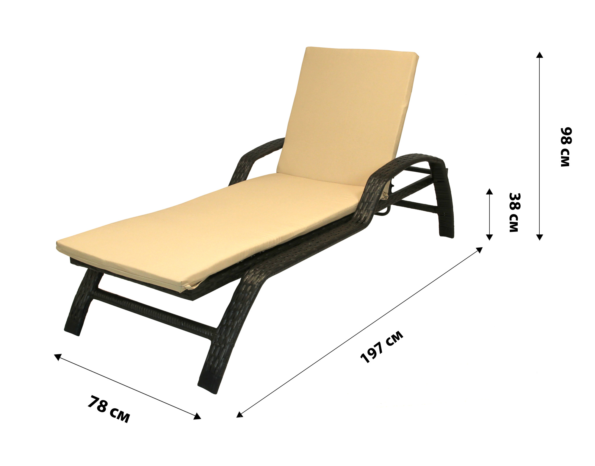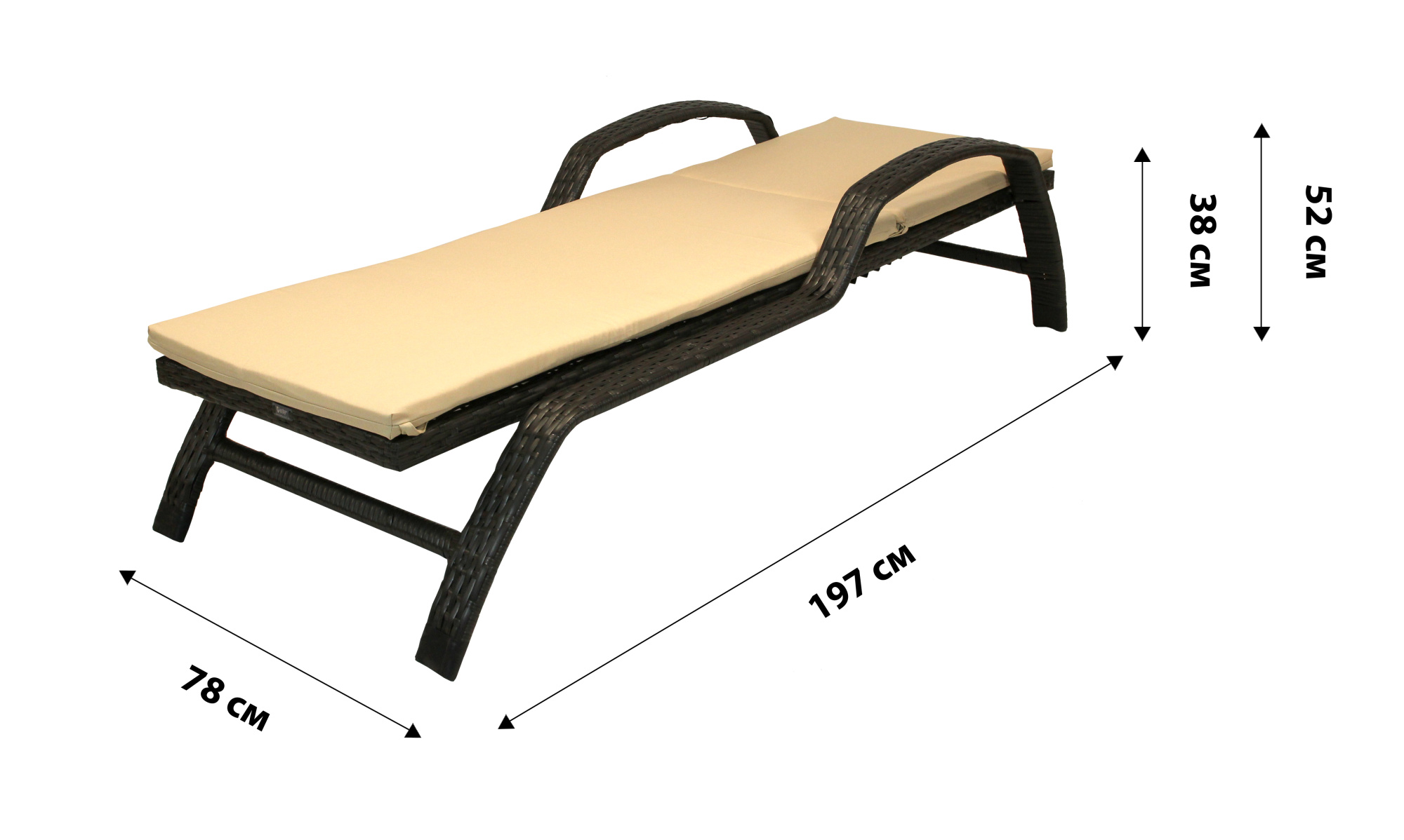 Габариты изделия (Ш/ГхДхВ) : 78х197х52 Штабелируется : Да Цвет каркаса : черный Материал каркаса : сталь Материал поверхности : ротанг искусственный Допустимая нагрузка : 120 Страна производства : РОССИЯХарактеристики