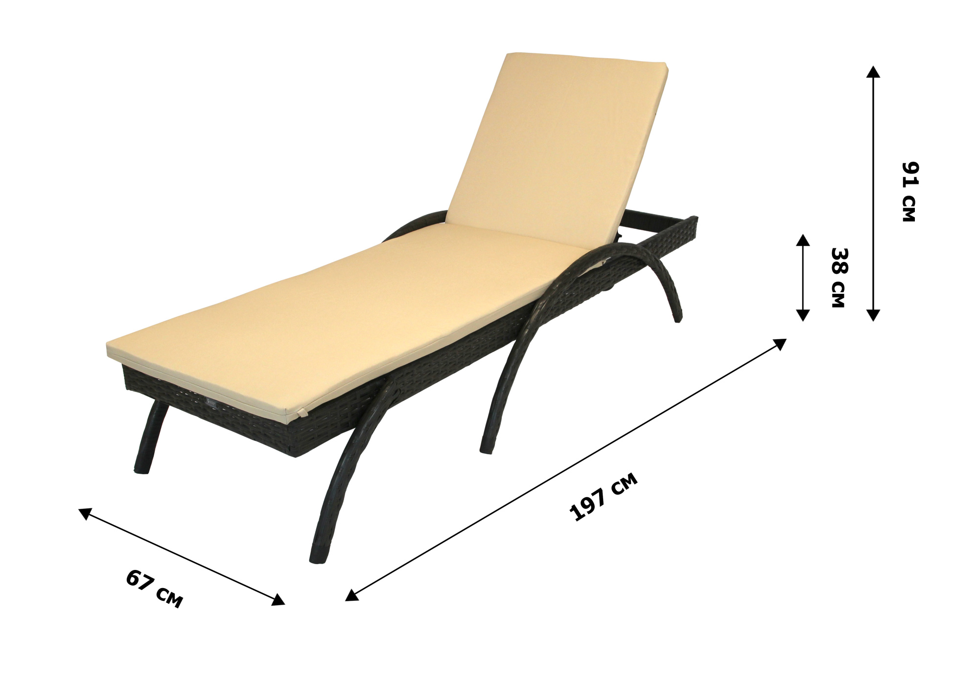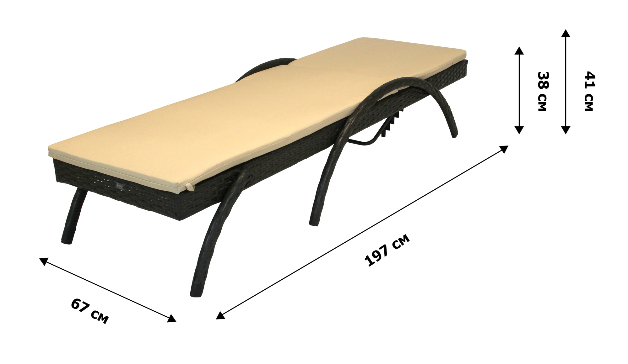 Габариты изделия (Ш/ГхДхВ) : 67х197х38 Штабелируется : Да Цвет каркаса : черный Материал каркаса : сталь Материал поверхности : ротанг искусственный Допустимая нагрузка : 140 Страна производства : РОССИЯХарактеристики
