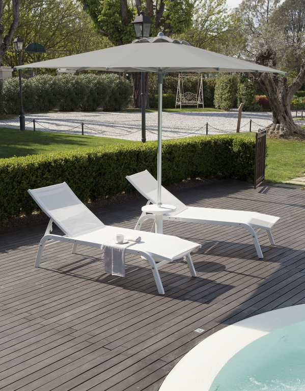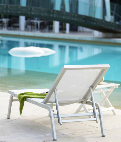 Шезлонг-лежак металлический Magnani Navy, серебристый ШезлонгNavy (901)отличается от других тем, что спинку можно отрегулировать в 4 различных положениях, усиленные распорки, анодирование, перекладина ножек 24 мм - все это делает этот шезлонг особенно подходящим для использования возле бассейна, на лодках и кораблях из-за большей толщины, что приводит к увеличению прочности. Материалы, используемые при производстве шезлонгов Magnani, качественные, прочные, износостойкие, что гарантирует сохранность изделий на протяжении 10 лет эксплуатации.Возможность реализовать каркасс цветным анодированием или окрашеннымцветами RAL вместе с широким выбором тканей делает лежак идеальным и универсальным изделием, которое можно согласовать в гармонии даже с уже имеющимся стилем и декоромдля оздоровительных центров, отелей, бассейнов, пляжей. Особенности модели: Каркас выполнениз анодированного алюминия первого литья, для которого используются улучшенные первичные сплавы с гарантией от разрушения, изгиба или ослабления соединенийв течение 10 летних сезонов. Детали анодированы, с сертификатом Qualanod от итальянского института Qualital. Все элементы собраны с использованием фурнитуры из нержавеющей стали AISI 304 и шайб из AISI 316. Между стальных деталей вставлены нейлоновые шайбы для снижения износа при трении. Все пластиковые элементы выполнены с использованием высококачественного нейлона. Спинка лежака регулируется в4различных положениях со ступенчатой системой. Лежак оснащенсистемой, которая фиксирует ножки,чтобы избежать риска травмирования рук, вызванных случайным закрытием. Тканевая вставка шезлонгаи козырька выполнена из текстилена (полиэстерс ПВХ покрытием). Сертифицирована Oeko Tex® - Standard 100 на отсутствие вредных веществ и Catas на разрывную нагрузку и износостойкость.Посмотреть палитру тканей. Открыть технические характеристики. Варианты отделки каркаса:анодированный серебристый. Варианты за дополнительную стоимость: анодированный бронзовый, глянцевый белый, окрашенный бежевый, антрацит и другие цвета по палитре RAL. Лежаки с отделками: окрашенный бежевый, антрацит и другие цвета по палитре RAL доступны для заказа от 50 штук. Дополнительные аксессуары: козырек, подголовник. Цена на сайте указана за модель Navyс анодированным серебристым каркасом. Цены на другие модели и дополнительную информацию уточняйте у менеджеров.