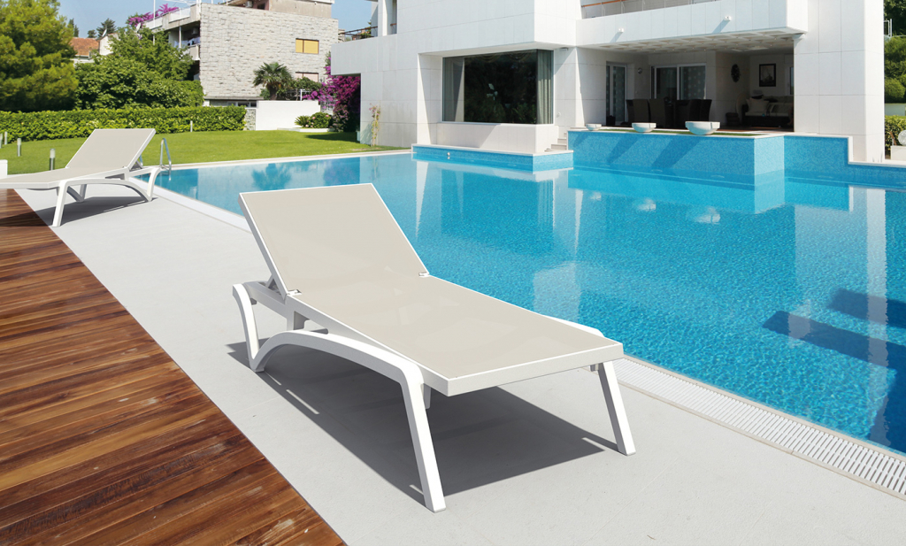 Вы можете купить Шезлонг-лежак пластиковый Siesta Contract Pacific, белый, бежевый оптом в нашем магазине, предложим цену с оптовой скидкой.