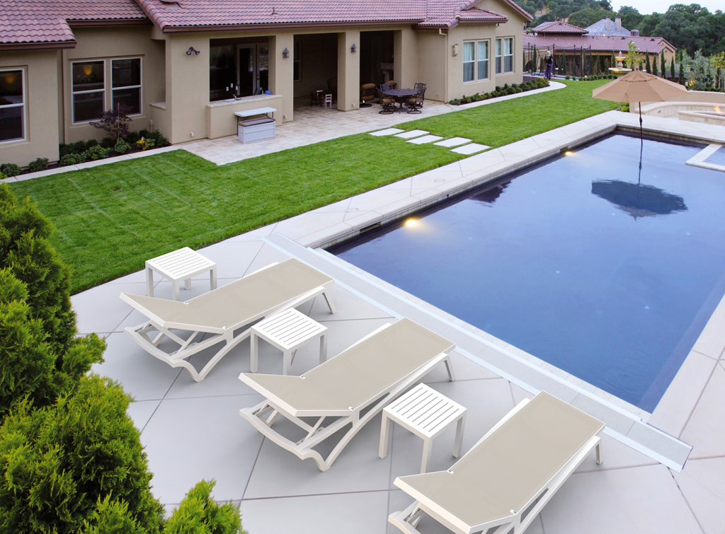 Шезлонг-лежак пластиковый Siesta Contract Pacific, белый, бежевый