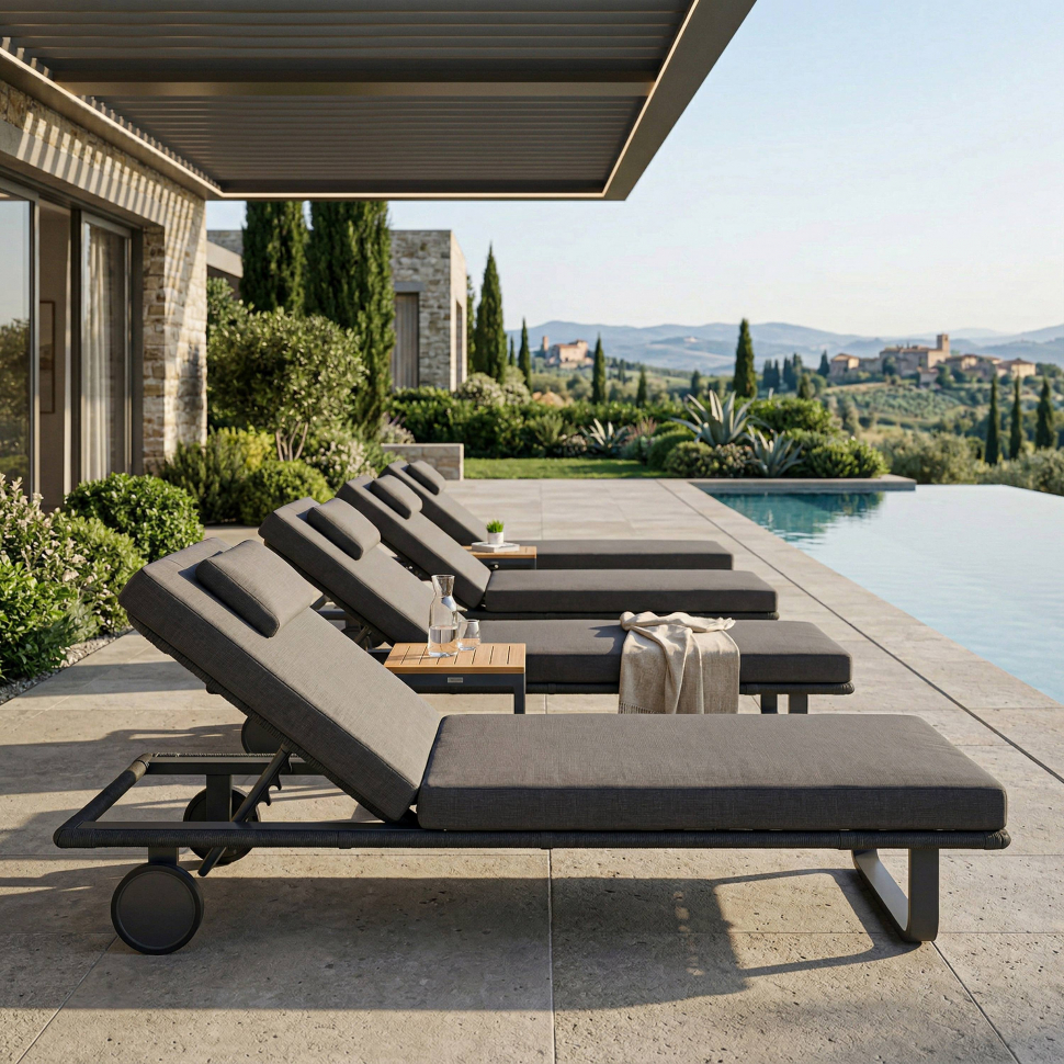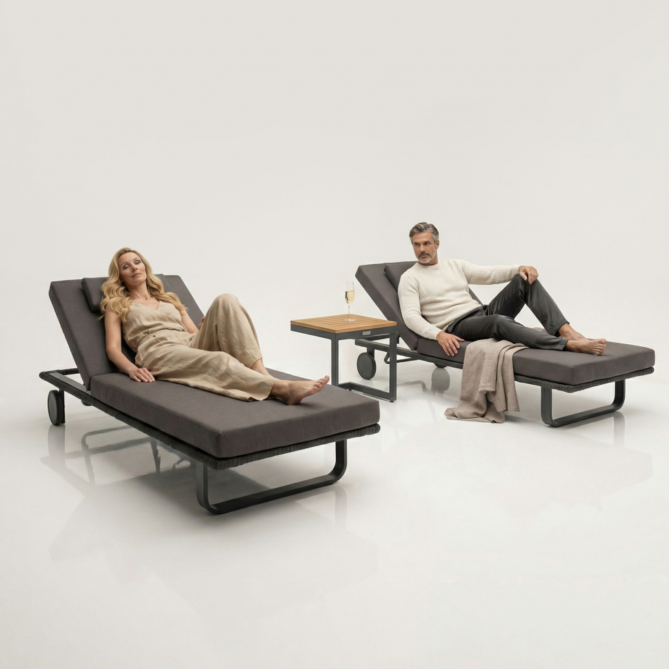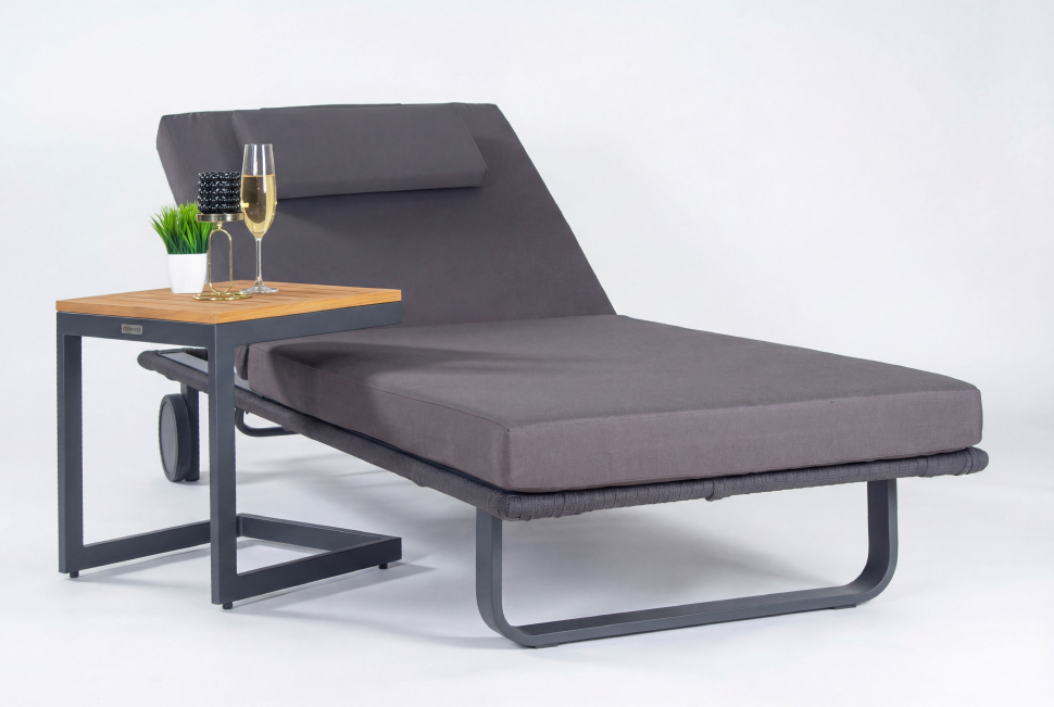 Шезлонг Ideal Patio КОСТА С на колесах, каркас карбон, матрас антрацит (с подушкой)