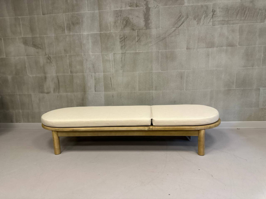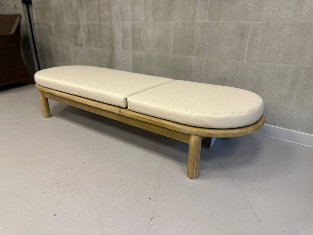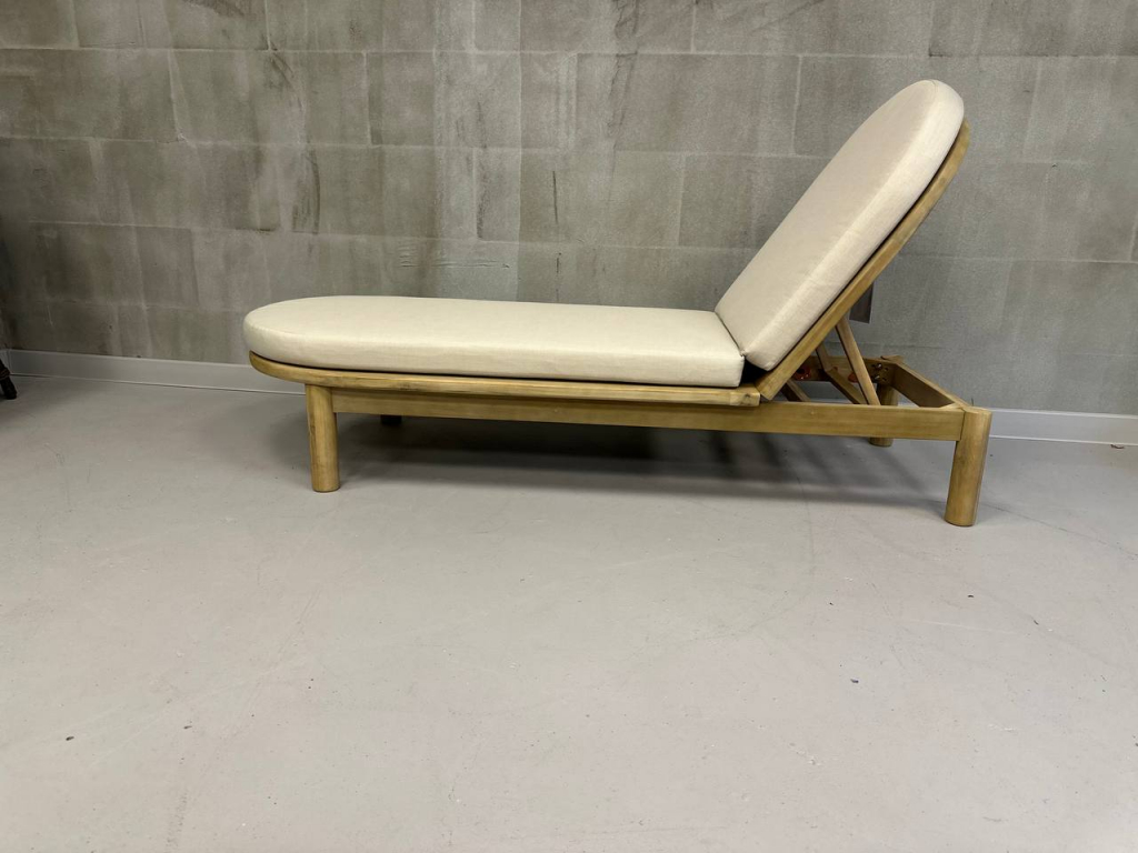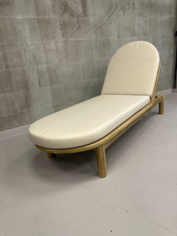 Шезлонг-лежак деревянный с матрасом Tagliamento Pill, светлый тик, бежевый
