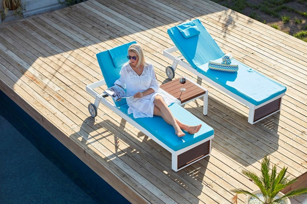 Чрезвычайно прочный и долговечный лежак Alezia оснащен регулируемой спинкой. Его фундаментальные линии и их ширина подчеркивают комфорт и делают его подходящим для оздоровительных центров, спа-салонов, а также крытых и открытых бассейнов. Эстетика, неподвластная времени, никогда не банальная, упрочненная алюминиевой структурой, которая контрастирует с открытой конструкцией панелей из африканского ироко, обеспечивая полноценный поток воздуха, который дает всей конструкции практичность, возможность дышать и ощущение эстетической легкости. Особенности: Каркас выполнен из алюминия с электростатическим защитным порошковым покрытием, которое предотвращает коррозию и делает этот материал подходящим для наружного применения. Основание шезлонга украшает ироко. Древесина ироко отличается очень высокой прочностью, твердостью и сопротивлением нагрузкам, практически не подвержена воздействию различного рода вредителей. Обивка матраса выполнена из олефина, подходящего для использования на открытом воздухе, водостойкого при любых погодных условиях, с гарантированной устойчивостью к выцветанию. Спинка шезлонга регулируется по высоте и может быть установлена в нескольких положениях для достижения максимального комфорта. Удобные колеса упрощают передвижение и маневрирование шезлонга. Открыть инструкцию по уходу. Для уточнения всех возможных вариантов материала и цвета данного изделия обращайтесь к нашим менеджерам.Характеристики