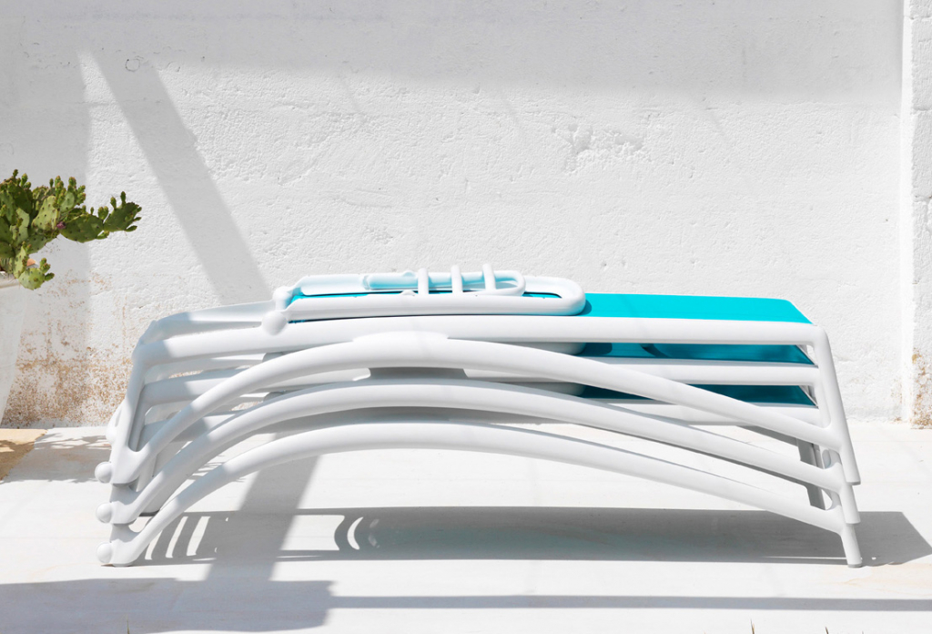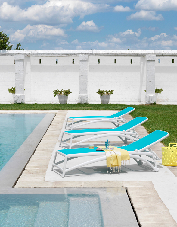 Шезлонг-лежак пластиковый Nardi Atlantico, белый, голубой