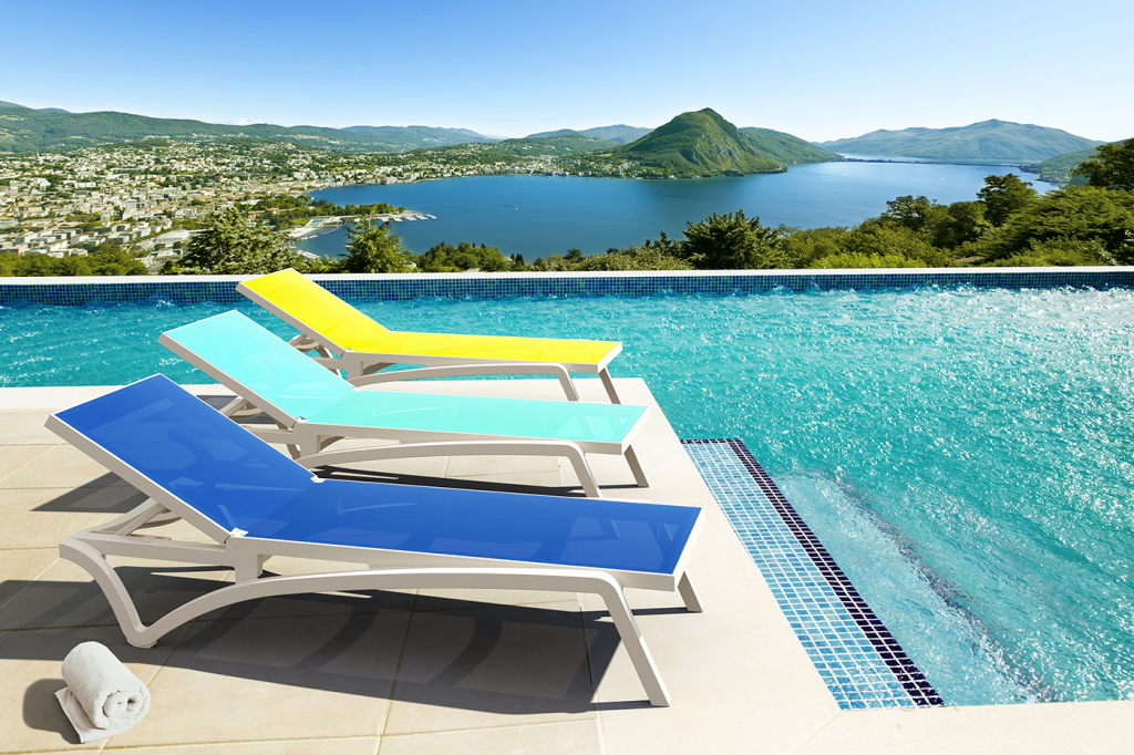 Шезлонг-лежак пластиковый, Siesta Contract Pacific, белый, голубой