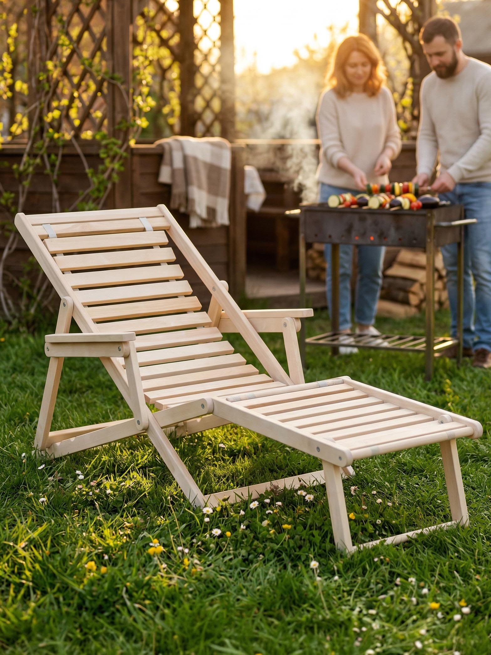 Раскладной шезлонг с подлокотниками – всё, что необходимо для комфортного отдыха на свежем воздухе. Конструкция полностью выполнена из экологически чистого материала – массива берёзы. В собранном виде модель занимает минимальное количества места. Шезлонг удобно брать с собой в поход или на пляж. Кроме того, вес лежака довольно небольшой, поэтому его легко переносить. Шезлонг с подлокотниками станет рациональной покупкой для тех, у кого есть загородный дом или дача, а также для любителей отдыха на природе. Угол наклона спинки меняется. Максимальная нагрузка – 120 кг. Материалы: массив березы Упаковка: 130*66,5*9,5 см, 1 место Вес: 9 кг Цвет: без покрытияХарактеристики